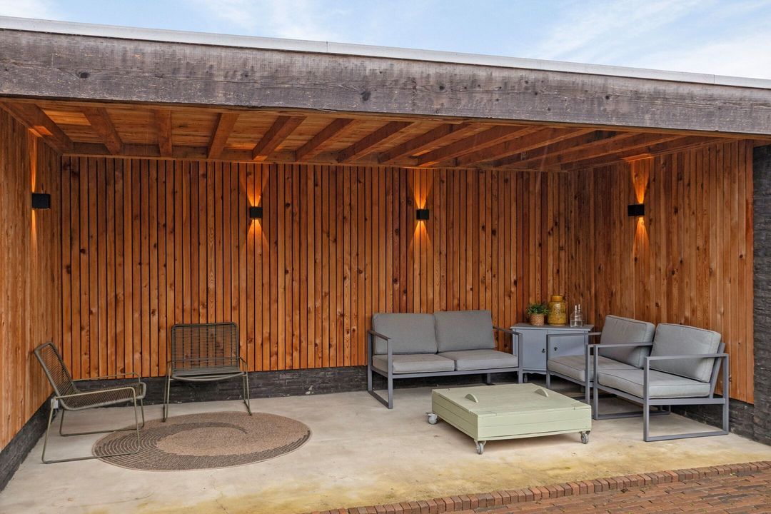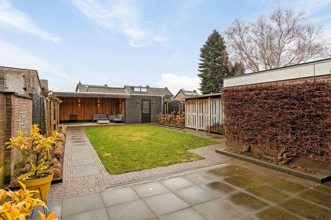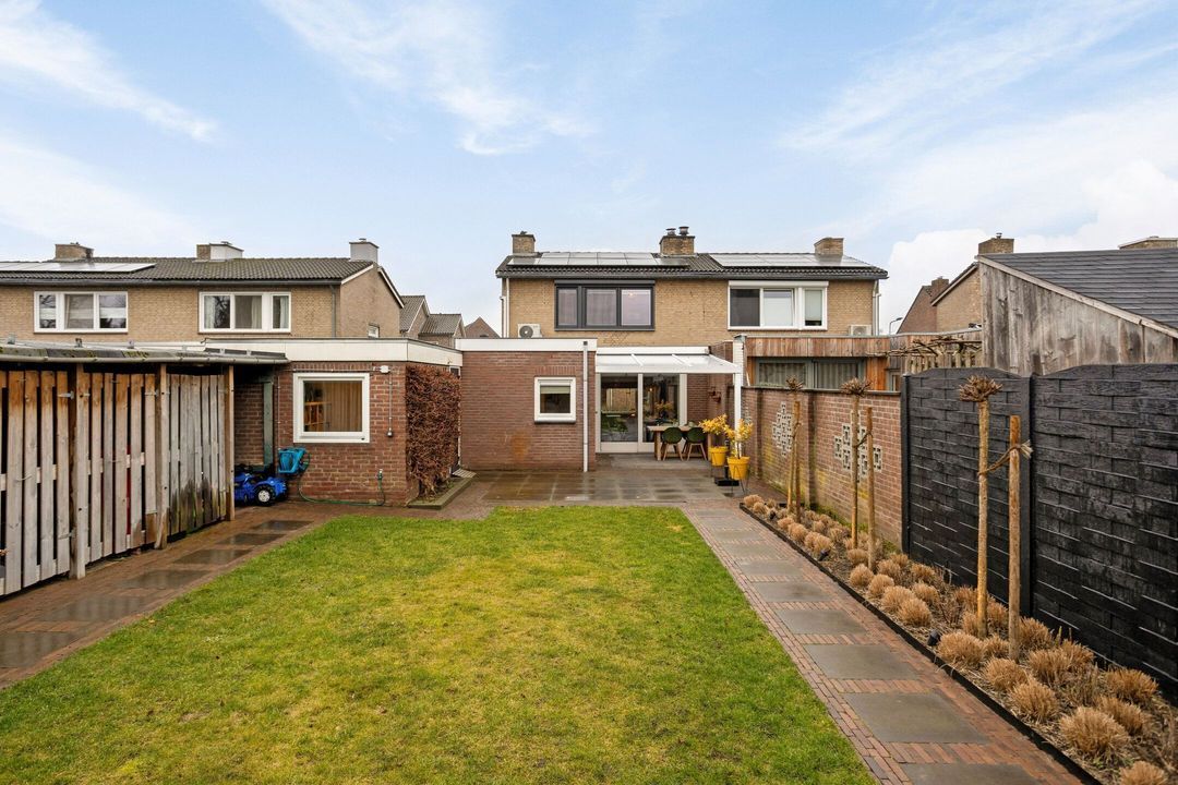 De ruime en volledig omheinde tuin is bereikbaar vanuit zowel de woonkamer als de bijkeuken. De tuin is verzorgd aangelegd met een combinatie van terras, gazon en plantenborders en biedt een prettige balans tussen groen en onderhoudsgemak. Meerdere overdekte zitplekken zorgen ervoor dat u het hele jaar door comfortabel buiten kunt verblijven. Direct aan de woning bevindt zich een overkapping en achter in de tuin is een extra overdekte zithoek gerealiseerd, waar de verlichting bedienbaar is via een app. Daarnaast is er een praktische berging aanwezig, ideaal voor extra koel- en vriesapparatuur of het opbergen van seizoensspullen.