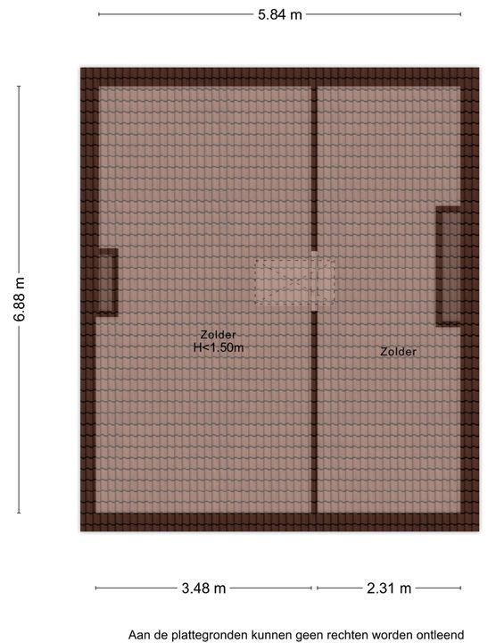 Via een vlizotrap bereikt u de zolderverdieping met een vloeroppervlakte van circa 48 m². Door de beperkte nokhoogte is deze verdieping uitsluitend geschikt als bergzolder.