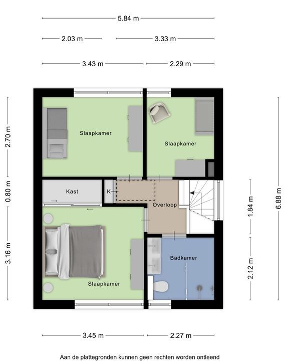 • Slaapkamer 3: Deze slaapkamer is ca. 6 m² groot.