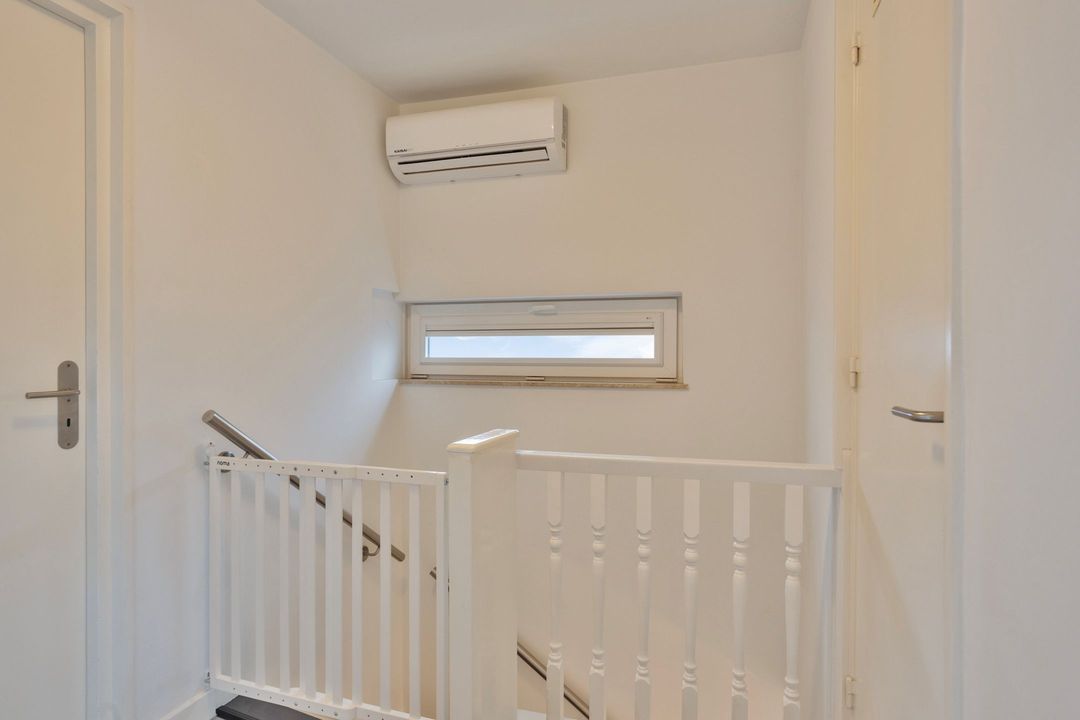 De overloop geeft toegang tot drie slaapkamers en de moderne badkamer. De PVC-vloer vanuit de hal op de begane grond is doorgetrokken naar deze verdieping, die bovendien is voorzien van airconditioning.