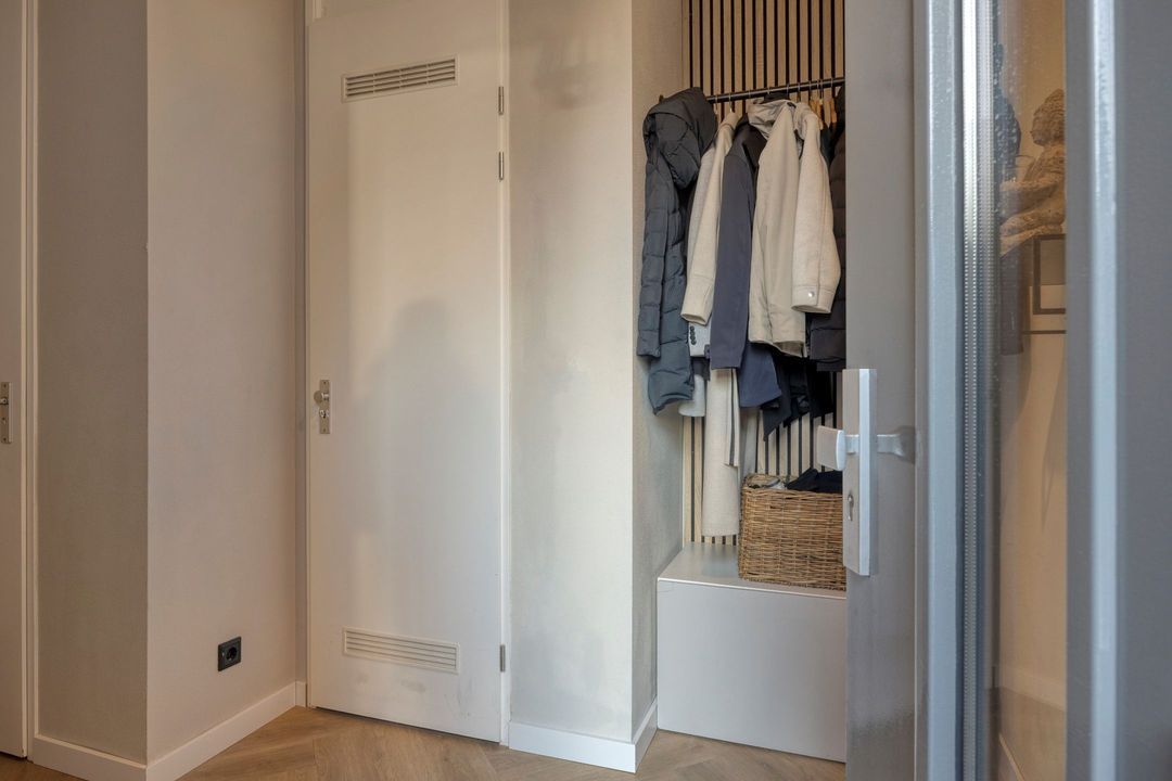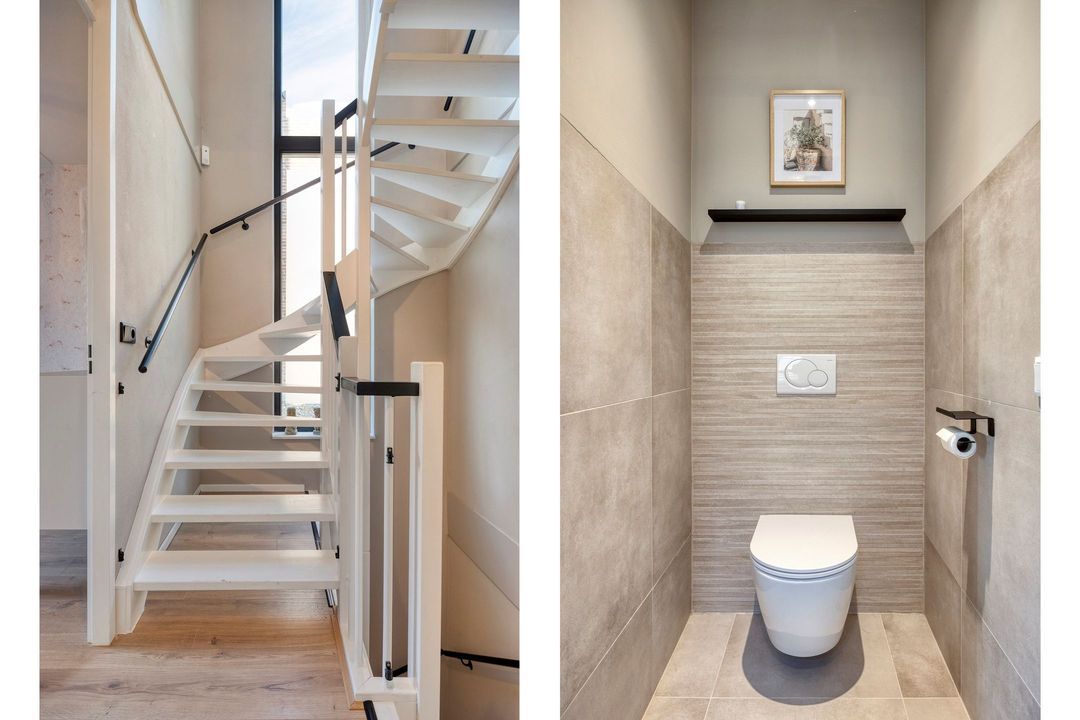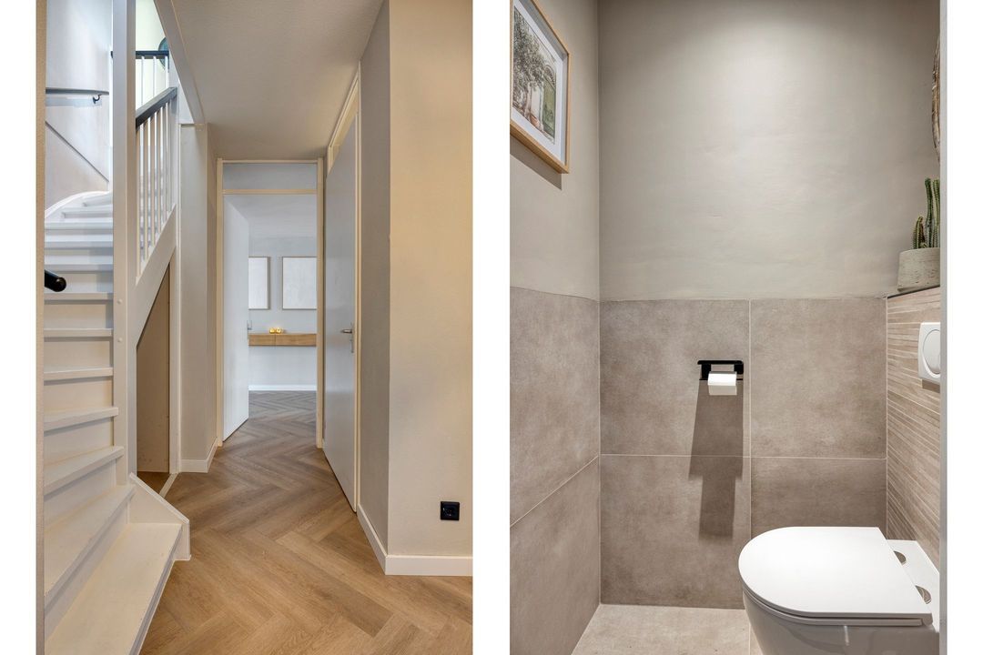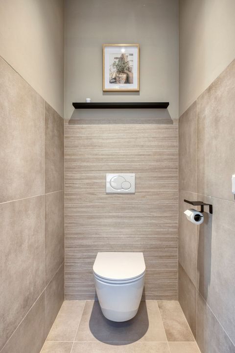 • Toiletruimte: Praktisch is de separaat gelegen toiletruimte. Deze toiletruimte is betegeld en voorzien van een modern hangcloset.