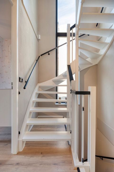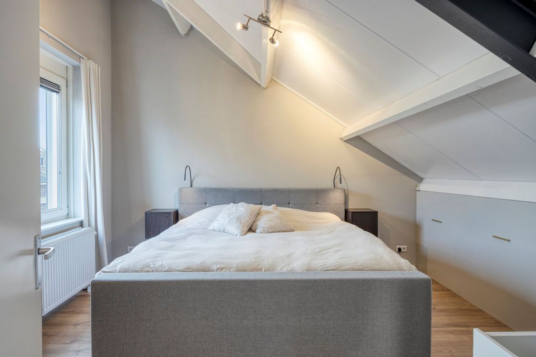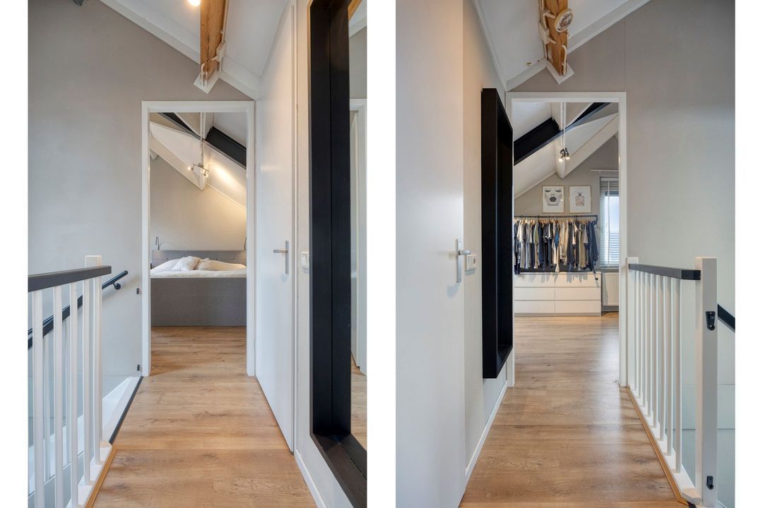 Via de vaste trap op de eerste verdieping bereikt u de overloop op de tweede verdieping. De tweede verdieping biedt verrassend veel ruimte. Via de overloop bereikt u twee slaapkamers en een praktische berging.