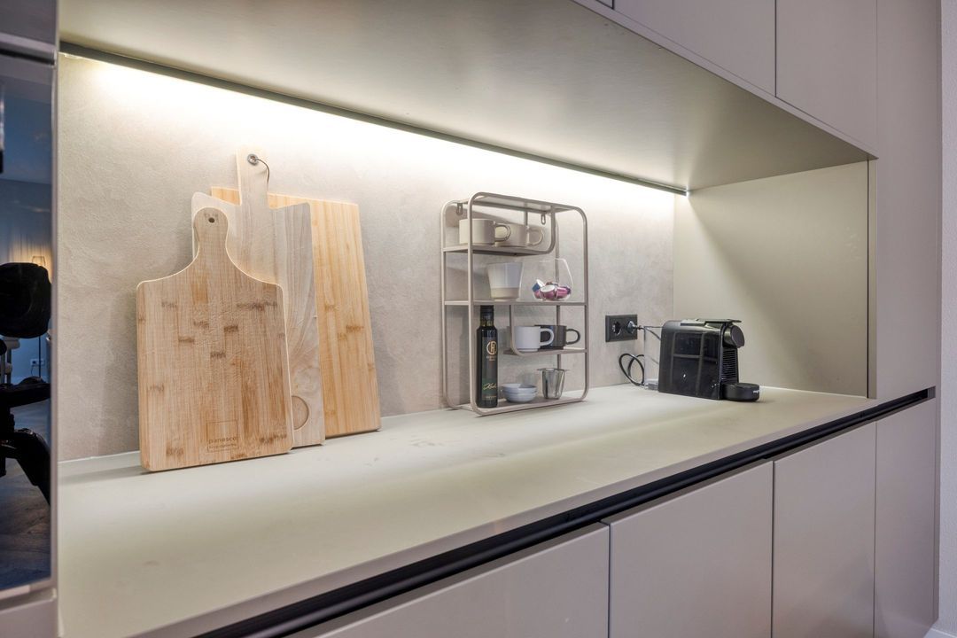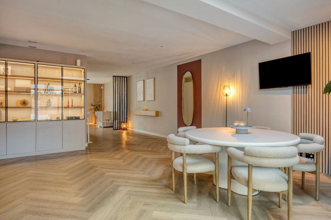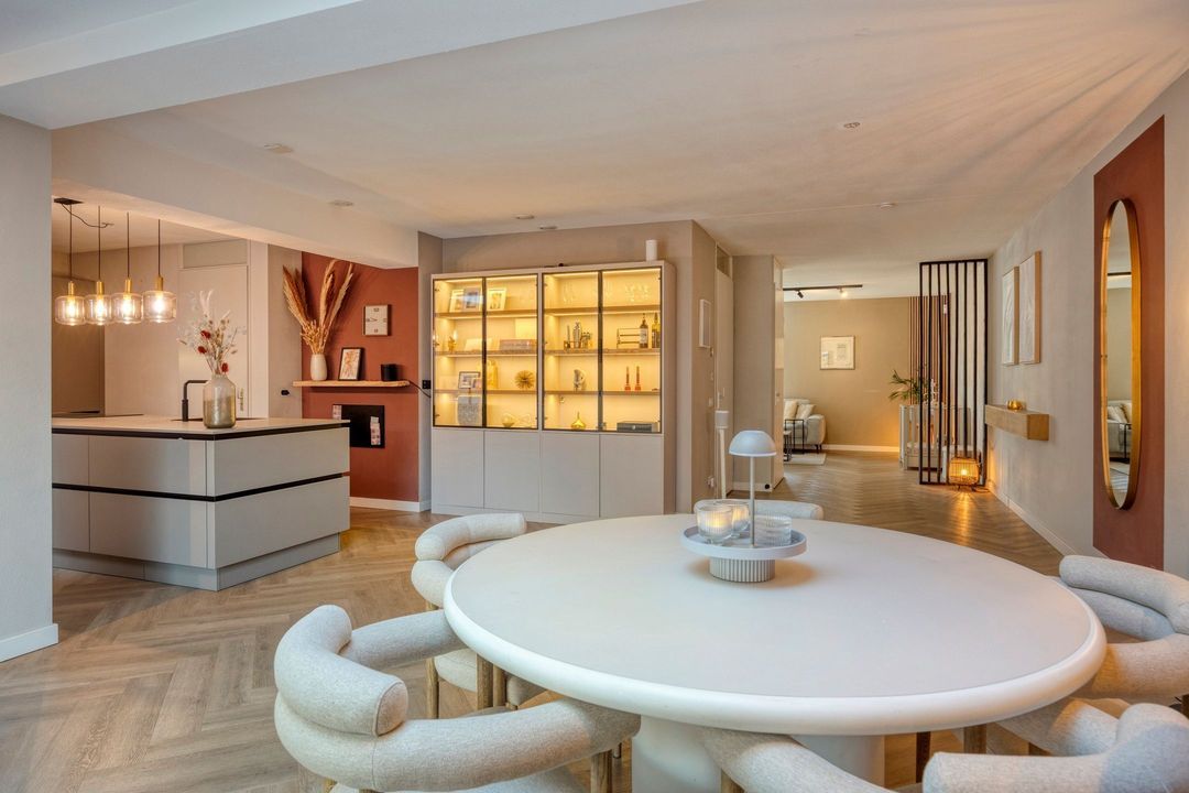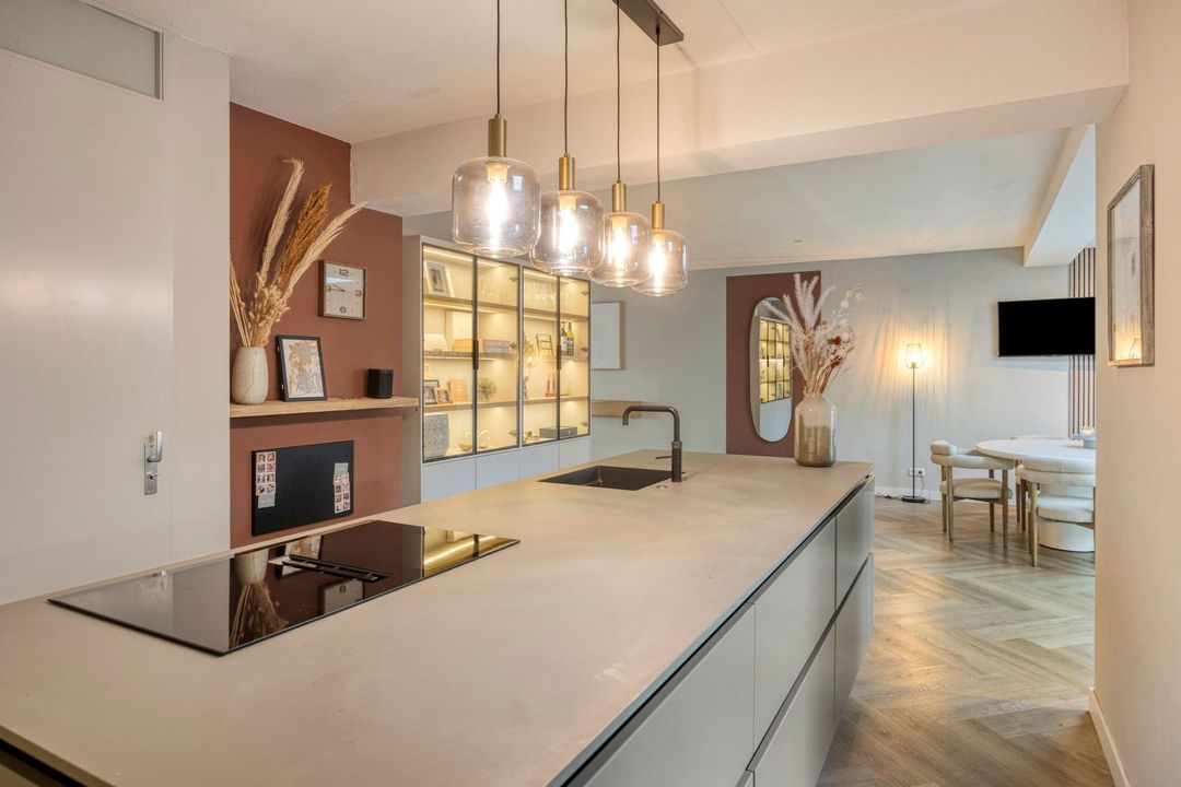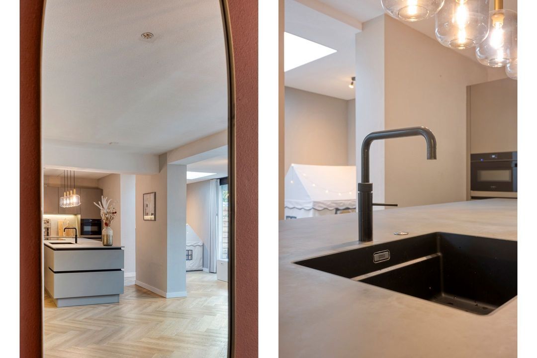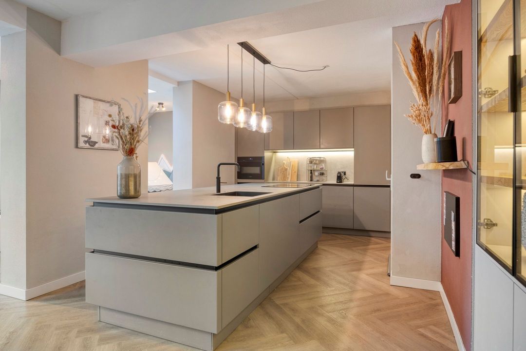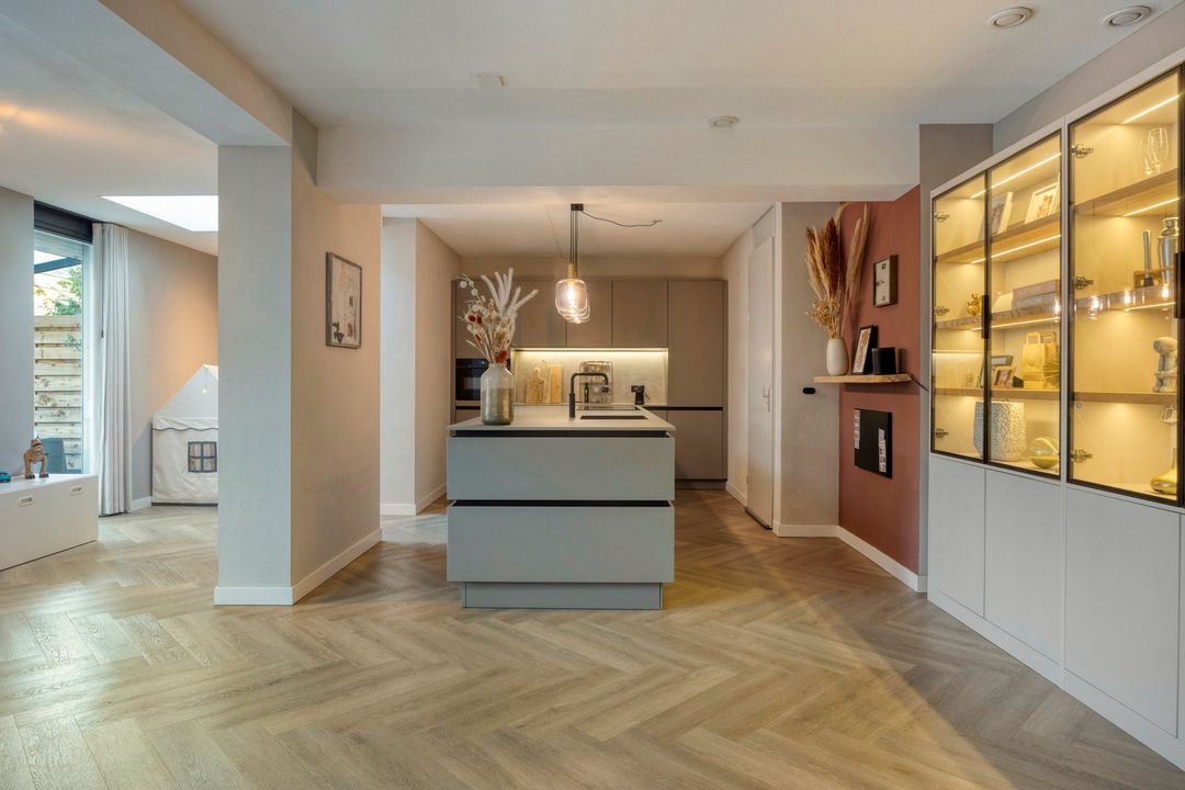 De moderne keuken vormt het hart van deze verdieping. Deze is in 2023 volledig vernieuwd en uitgevoerd met een ruim kookeiland, greep loze fronten en hoogwaardige inbouwapparatuur. Tot de aanwezige apparatuur behoren onder andere een inductiekookplaat met geïntegreerde afzuiging, een combi-oven, een Quooker-kraan, een vaatwasser en een koelkast. Een ideale keuken voor de kookliefhebber én het gezellige samenzijn.