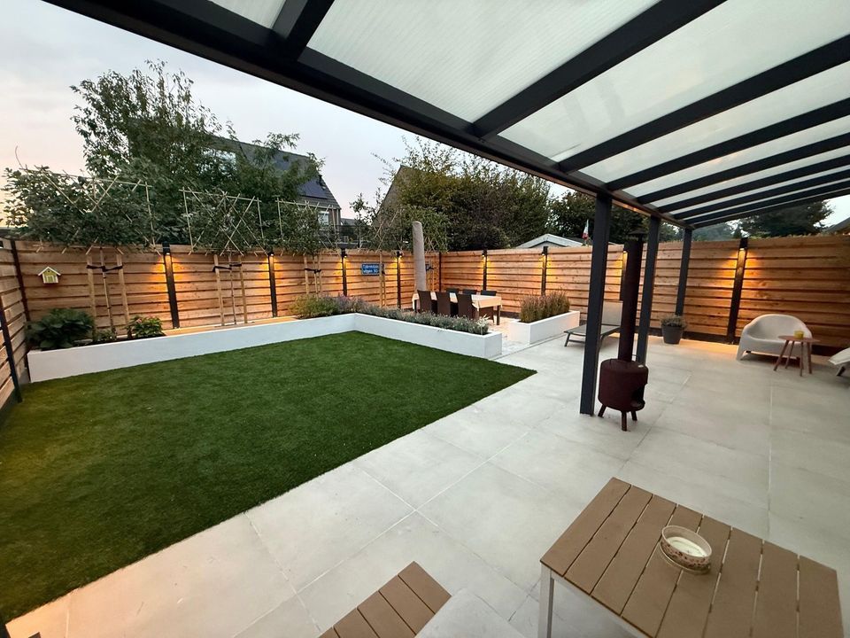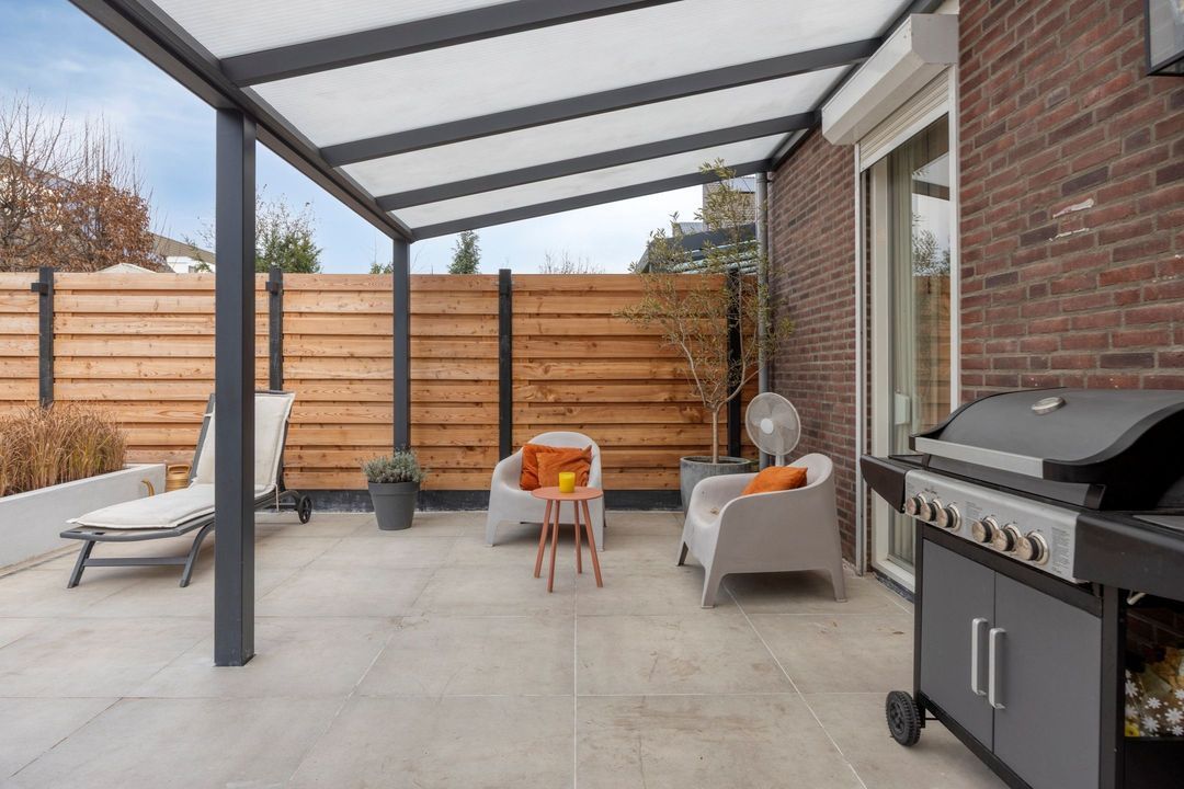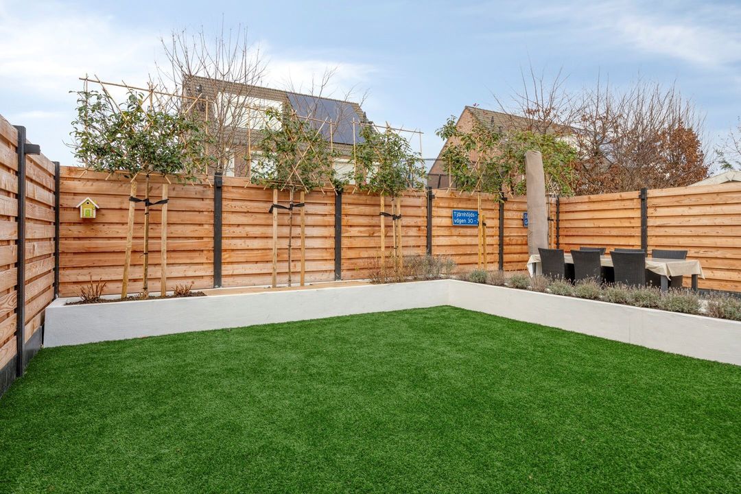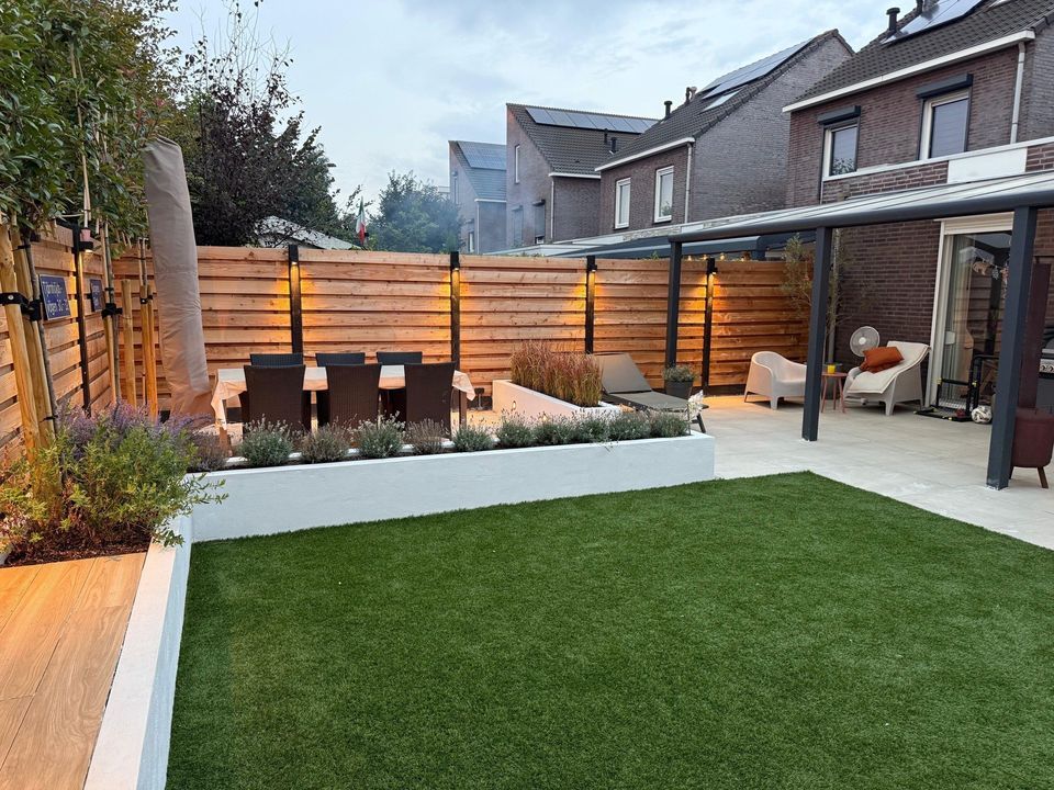 Achter de woning ligt een fraai aangelegde, onderhoudsvriendelijke tuin die via de schuifpui direct bereikbaar is. De tuin is in 2025 volledig gerenoveerd, volledig omheind en beschikt over een ruim terras met overkapping, waardoor u hier vrijwel het hele jaar door heerlijk kunt vertoeven. Daarnaast vindt u diverse groenborders en een kunstgras gazon, ideaal voor speelruimte, ontspanning en buitenleven.