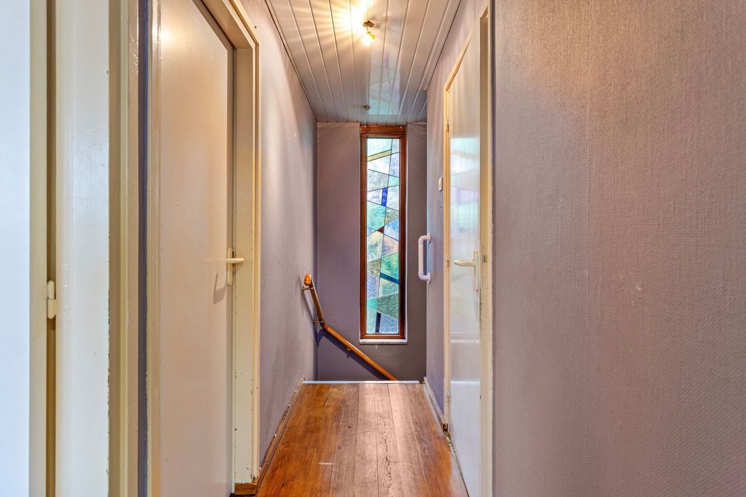 Via de trap in de entree bereikt u de overloop op de eerste verdieping, voorzien van een houten vloer. Deze geeft toegang tot drie slaapkamers, de badkamer en de vlizotrap naar de zolderverdieping.