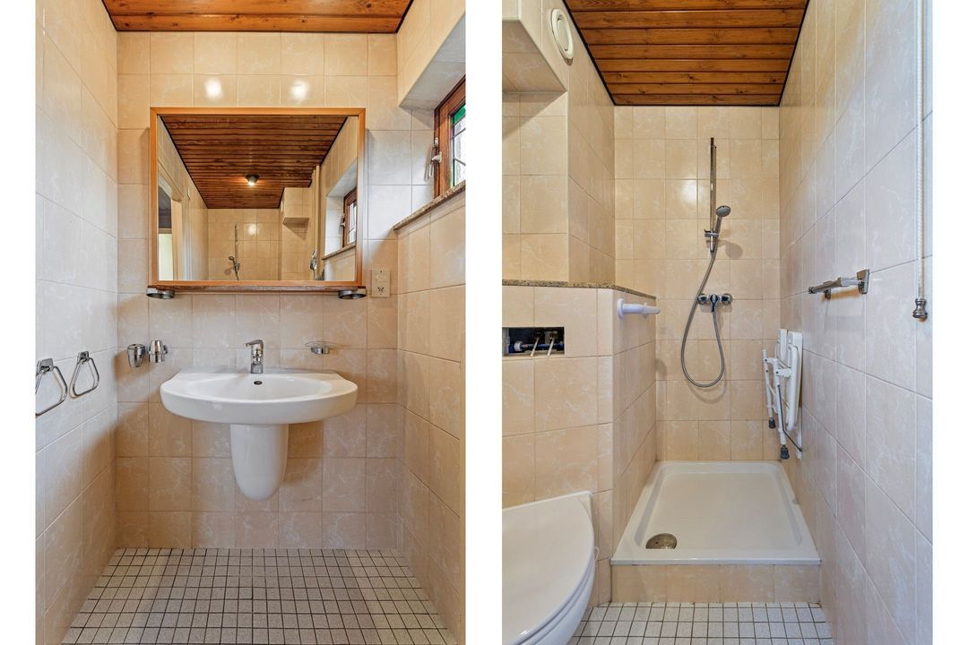 • Badkamer: De goed onderhouden, betegelde badkamer is ca. 3 m² groot en voorzien van een douche, een wastafel en een hangcloset.