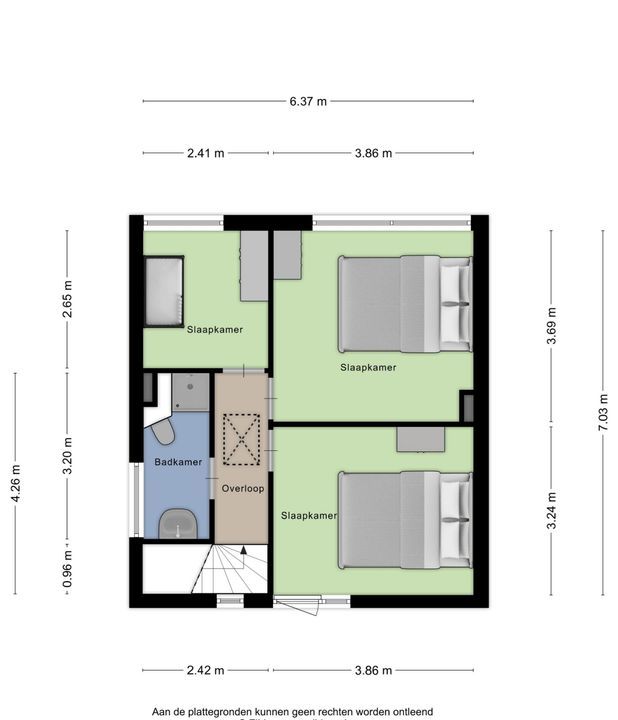 • Slaapkamer 3: Deze slaapkamer is ca. 6 m² groot. Ideaal te gebruiken als hobby- of babykamer.