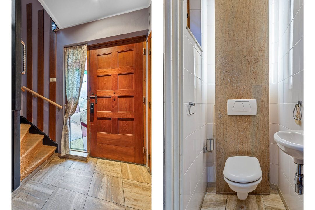 Bij binnenkomst betreedt u de ruime entree van ca. 8 m², afgewerkt met een stijlvolle tegelvloer. Vanuit de hal heeft u toegang tot de meterkast, de toiletruimte, de woonkamer en de keuken. Tevens bevinden zich hier de trap naar de eerste verdieping en een praktische trapkast voor extra bergruimte. De geheel betegelde toiletruimte is voorzien van een hangcloset en fonteintje.