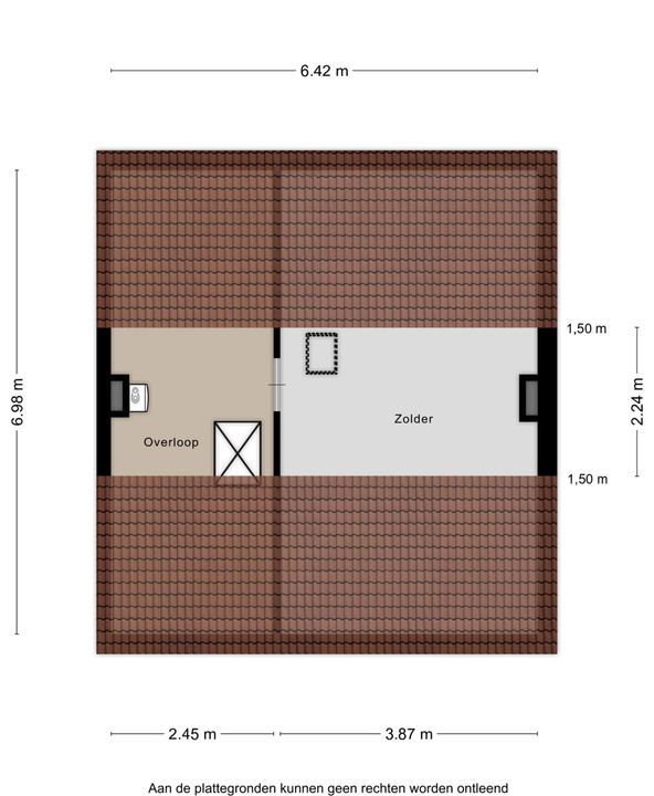 Via de vlizotrap bereikt u de zolderverdieping, bestaande uit twee ruimtes van ca. 8 m² en 16 m². Hier bevindt zich tevens de cv-ketel (Remeha, eigendom, 2015). Met aanpassingen zoals een vaste trap en het plaatsen van een dakkapel kan deze verdieping worden omgevormd tot een extra slaapkamer of multifunctionele ruimte.