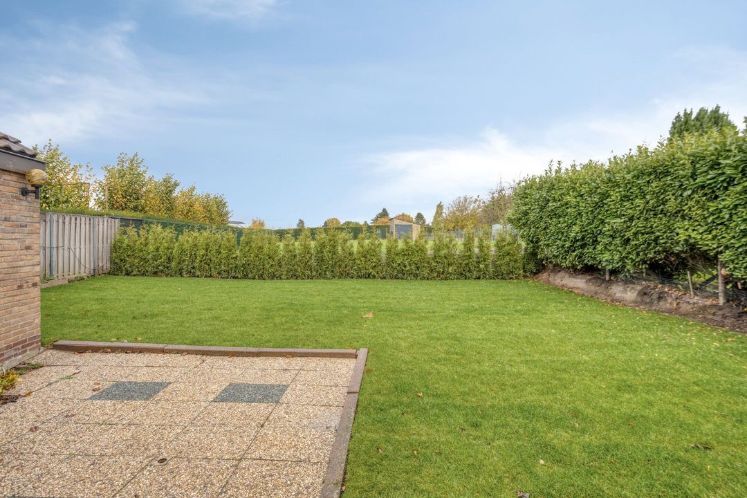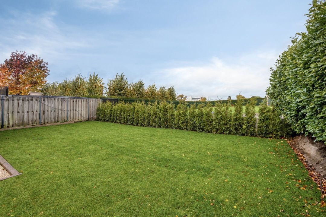 De prettige onderhoudsvrije, omsloten tuin is bereikbaar middels deuren in de leefruimte, de garage en de zijingang. De tuin bestaat uit een gazon en een terras, maar is in te richten naar ieders wens.