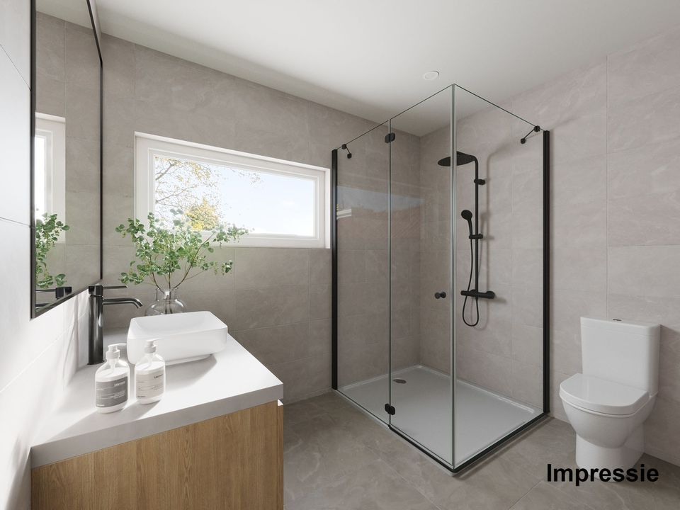 • Badkamer: Deze badkamer is ca. 5 m² groot. Deze is door de vorige eigenaar reeds verwijderd en verruimd. Er is daglicht aanwezig doormiddel van een gevelraam. Er is een impressie bijgevoegd.