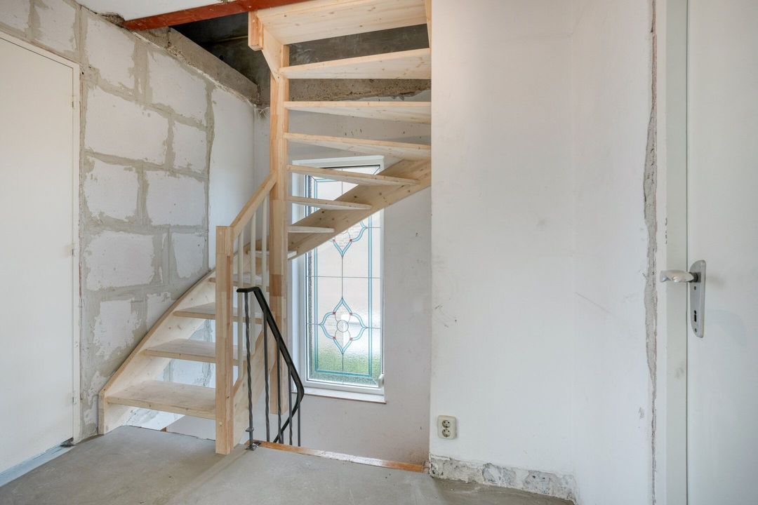 De woning is volledig voorbereid op verdere modernisering: de ondervloer is vernieuwd, de muurdoorbraak gerealiseerd, het behang verwijderd, de vaste trap geplaatst en de open haard op de begane grond verwijderd. Dit biedt u de ideale basis om de woning geheel naar eigen smaak af te werken en in te richten.