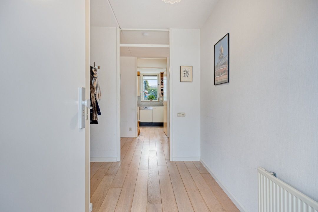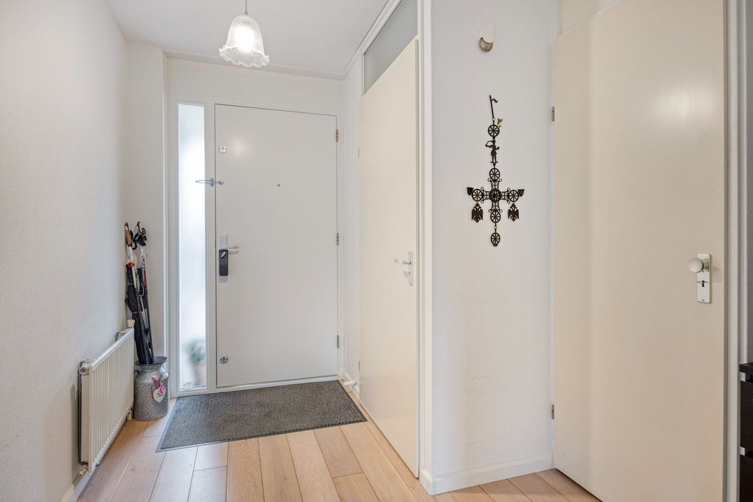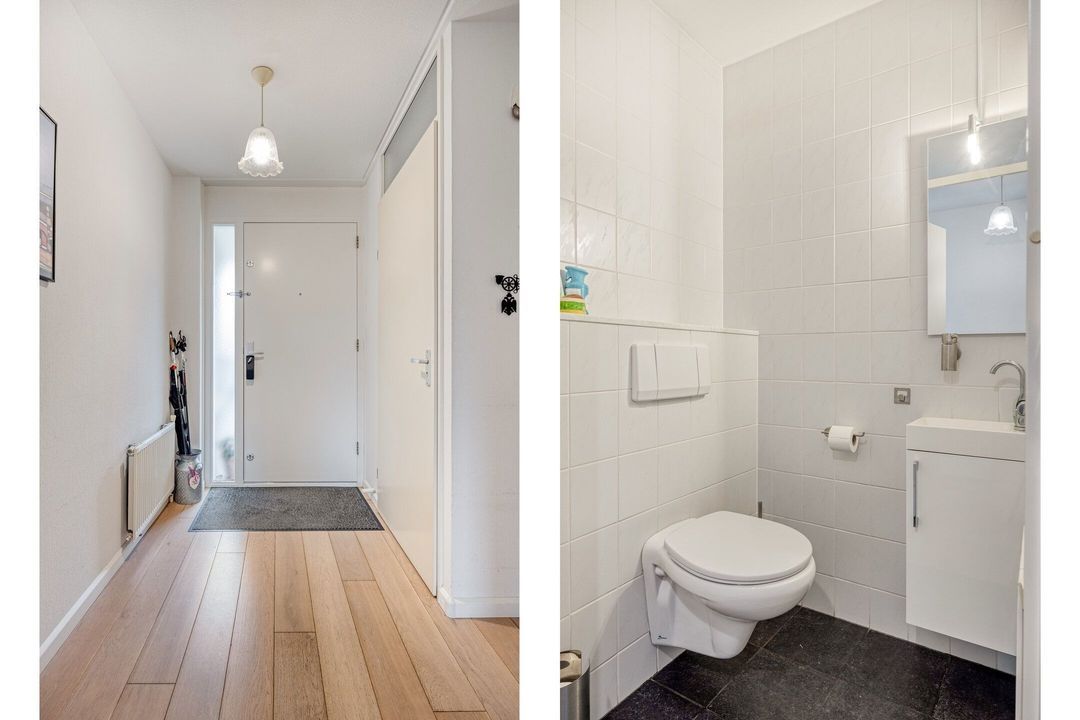 Via de entree (ca. 5 m²) betreedt u de woning, waar direct de verzorgde parketvloer opvalt die een warme en moderne uitstraling geeft. In de hal bevinden zich de meterkast, een nette, volledig betegelde toiletruimte met hangcloset en fonteintje, en de toegang tot de woonkamer.