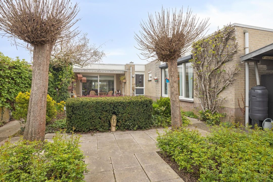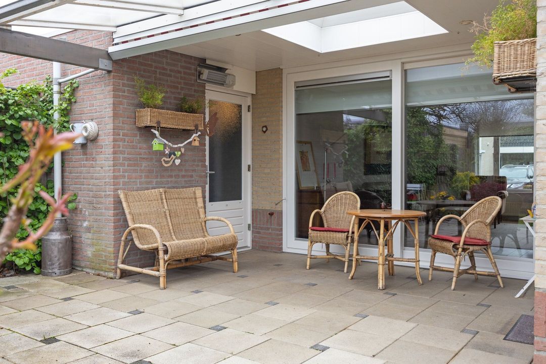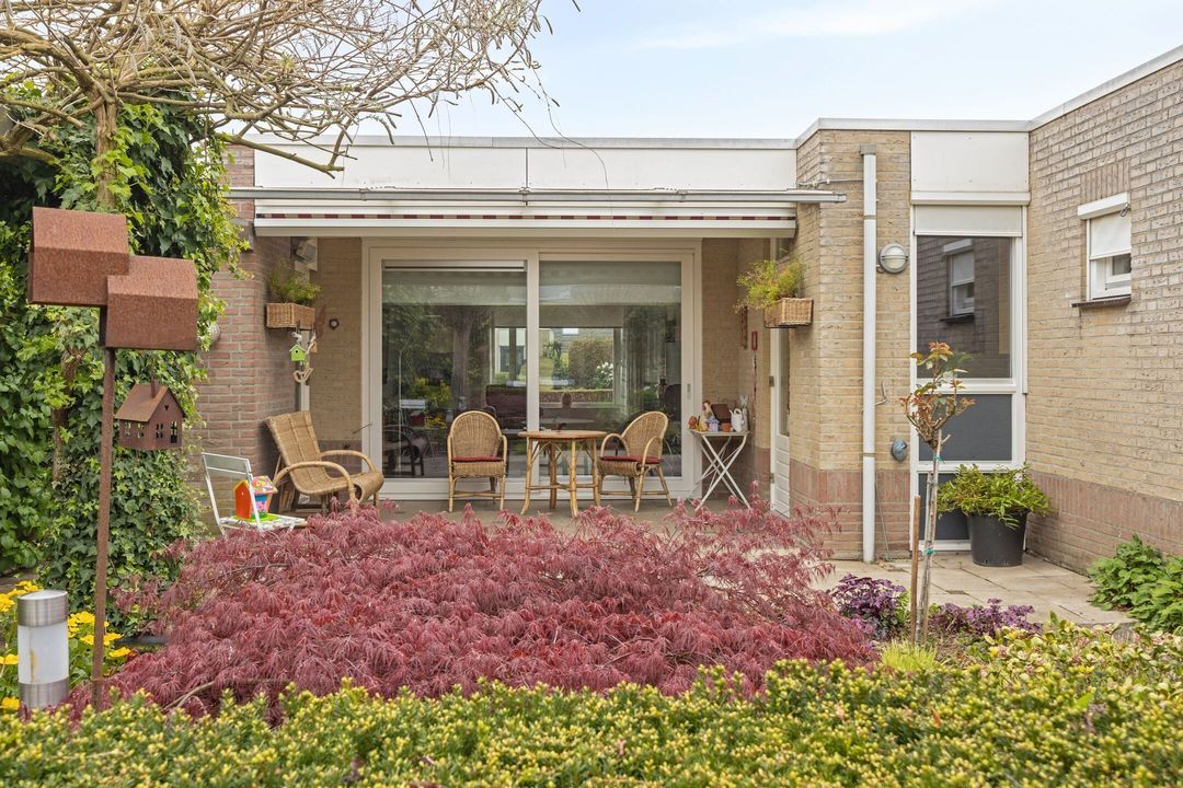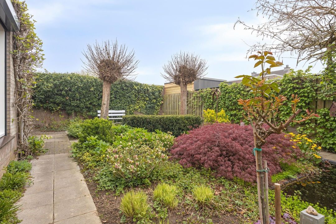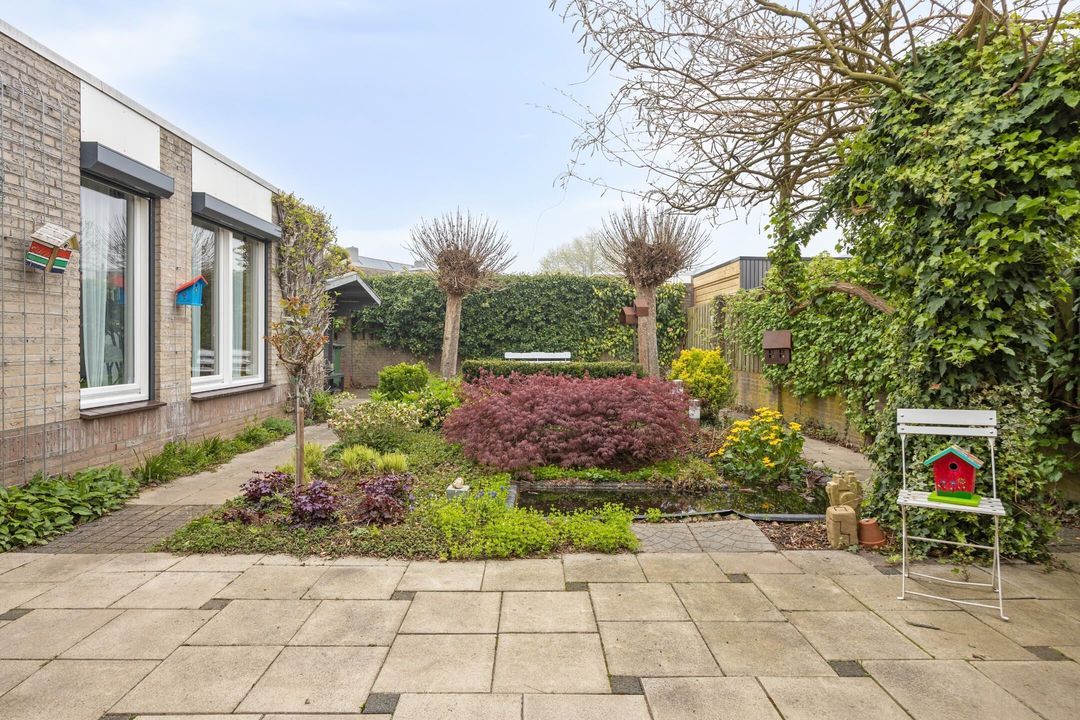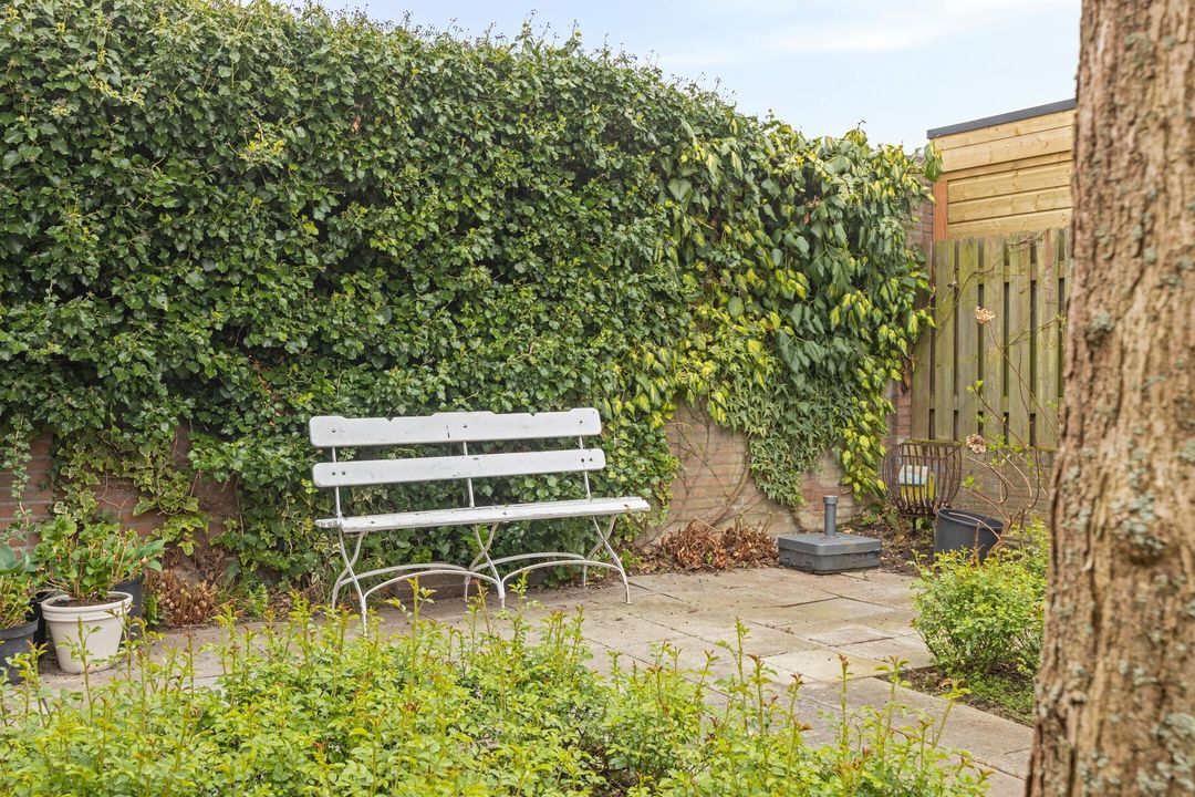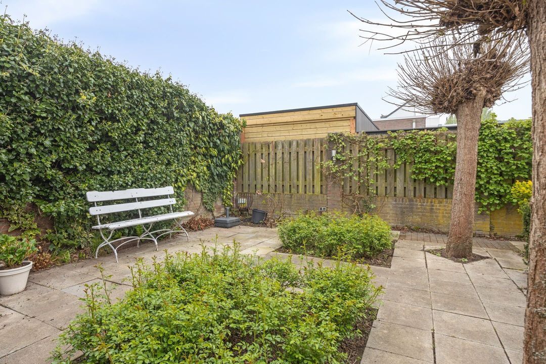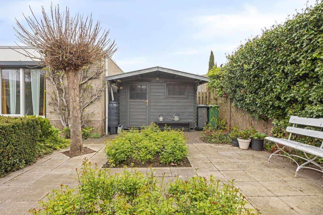 De fraai aangelegde en volledig omsloten tuin biedt volop privacy en is een heerlijke plek om te ontspannen. Via de schuifpui in de woonkamer, de keukendeur en de garage bereikt u het overdekte terras (ca. 15 m²). Dit comfortabele terras, voorzien van een lichtstraat en heater, maakt het mogelijk om het hele jaar door van het buitenleven te genieten. De tuin is verder ingericht met meerdere terrassen en plantenborders. Daarnaast is er een praktische tuinberging (ca. 7 m²), ideaal voor het opbergen van tuinmateriaal en gereedschap.