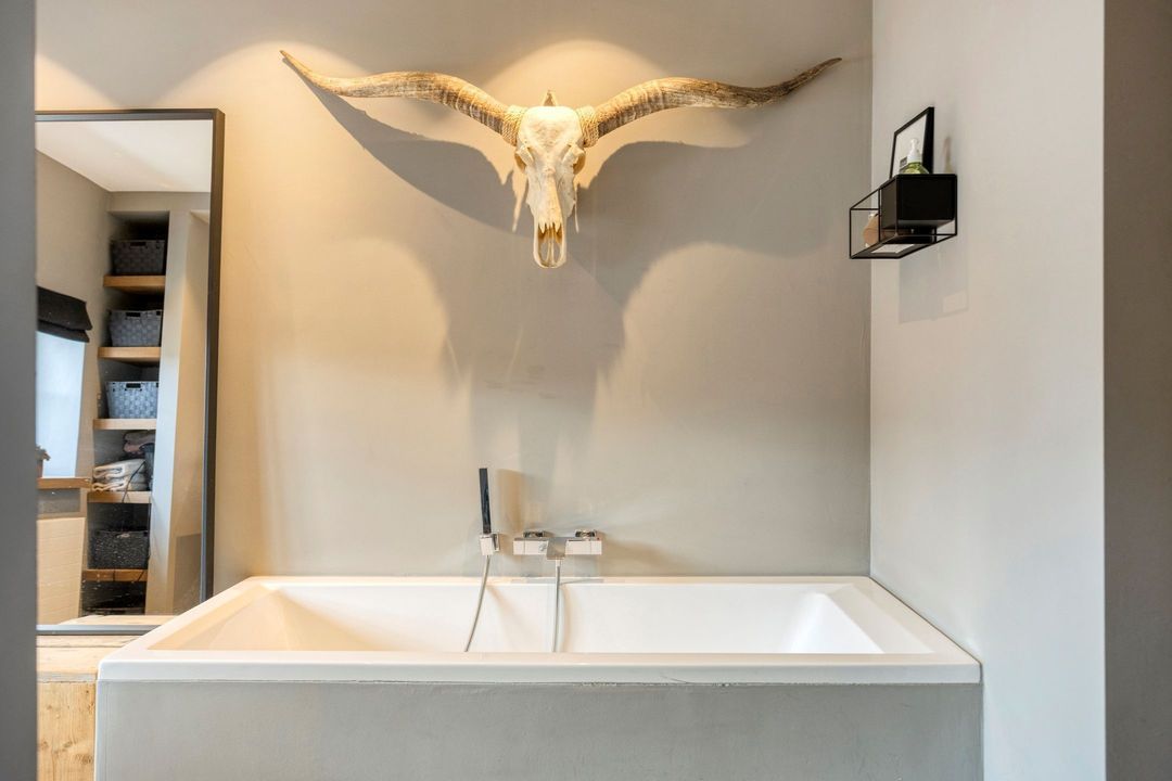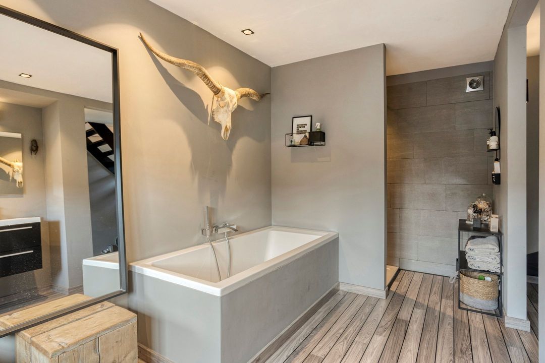 • Badkamer: Deze goed onderhouden, luxe, ruime badkamer (ca. 11 m²) is betegeld en uitgerust met een inloopdouche, een ligbad, een luxe wastafelmeubel met dubbele wasbak en een hangcloset. De ruimte biedt volop comfort voor dagelijks gebruik en heeft een rustige, verzorgde uitstraling.