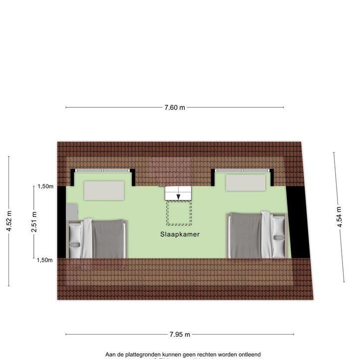 Via de trap op de eerste verdieping bereikt u de ruime tweede verdieping, waar zich een royale tweede slaapkamer bevindt (mogelijk ook derde slaapkamer). Doordat de trap centraal in de ruimte is geplaatst, kan de verdieping eenvoudig worden opgedeeld in twee volwaardige slaapkamers. Met het plaatsen van een gipswand en een deurkozijn creëert u twee ruime, afzonderlijke kamers. Mede door de reeds twee aparte dakkappelen aan de achterzijde.