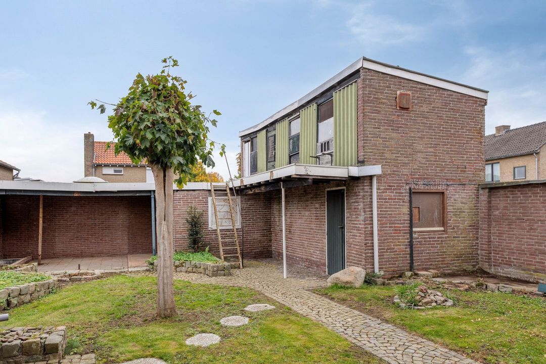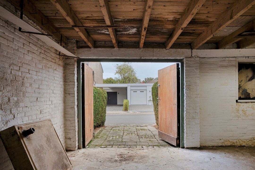 De ruime garage (ca. 34 m²) is bereikbaar vanuit de tuin of via de oprit aan de zijkant van de woning, gelegen aan de Meester Claessensstraat. De garage biedt voldoende ruimte voor het parkeren van één of meerdere voertuigen, het stallen van fietsen of extra opslag. Boven de garage bevindt zich bovendien een praktische berging/schuur.