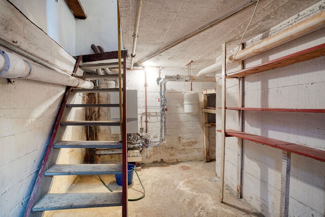 Via een deur in de entree is de kelder bereikbaar. Deze betegelde kelderruimte van ca. 10 m² is praktisch in gebruik, bijvoorbeeld voor het opslaan van voorraden. Hier bevindt zich tevens de cv-installatie (Vaillant, 2013, Eigendom).