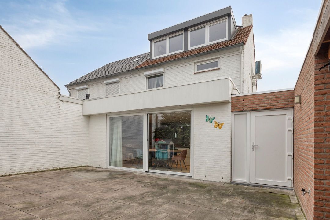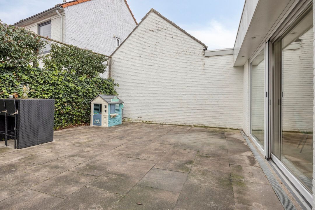 De ruime, onderhoudsvriendelijke achtertuin is bereikbaar via de schuifpui in de woonkamer én via de deur in de bijkeuken. De tuin is ingericht met een combinatie van een terras en groene plantborders, en is volledig omheind, waardoor privacy en rust gegarandeerd zijn. Aan de achterzijde bevindt zich een fijne overkapping van ca. 10 m² (geplaatst in 2025), een heerlijke plek om te genieten, te ontspannen of gezellig te tafelen.