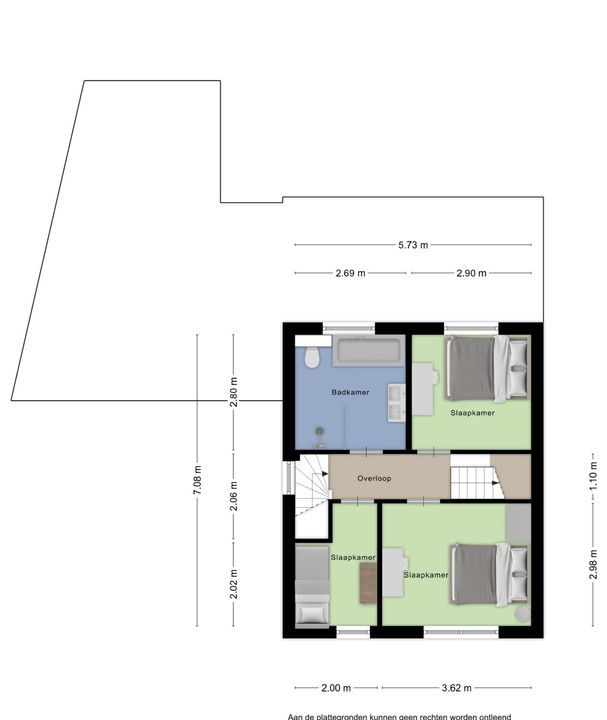 • Slaapkamer 3: Deze slaapkamer is ca. 5 m² groot en is ideaal te gebruiken als hobbykamer of kinderkamer.