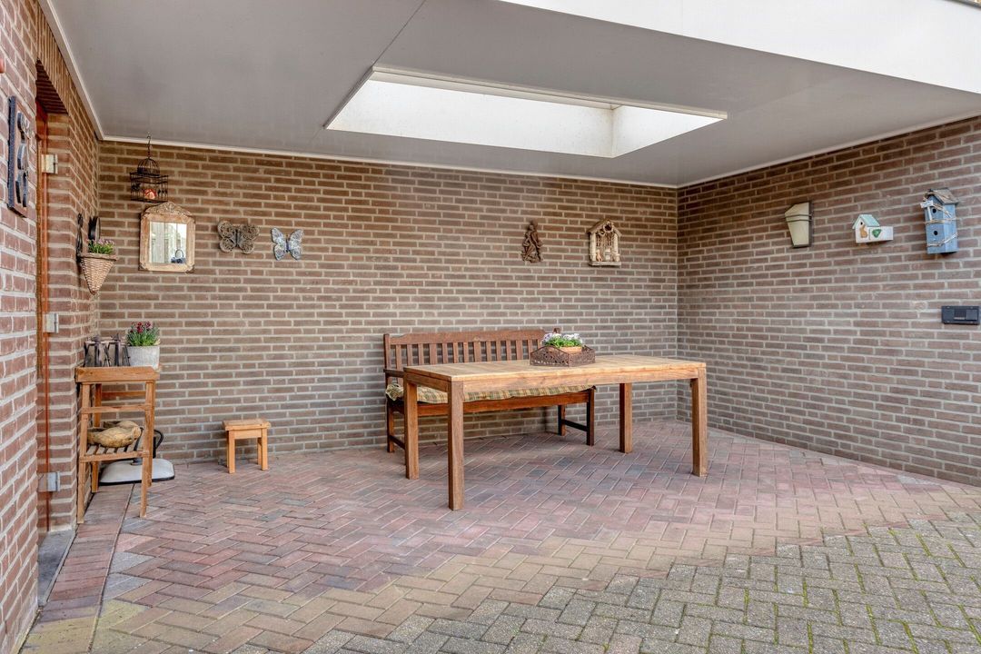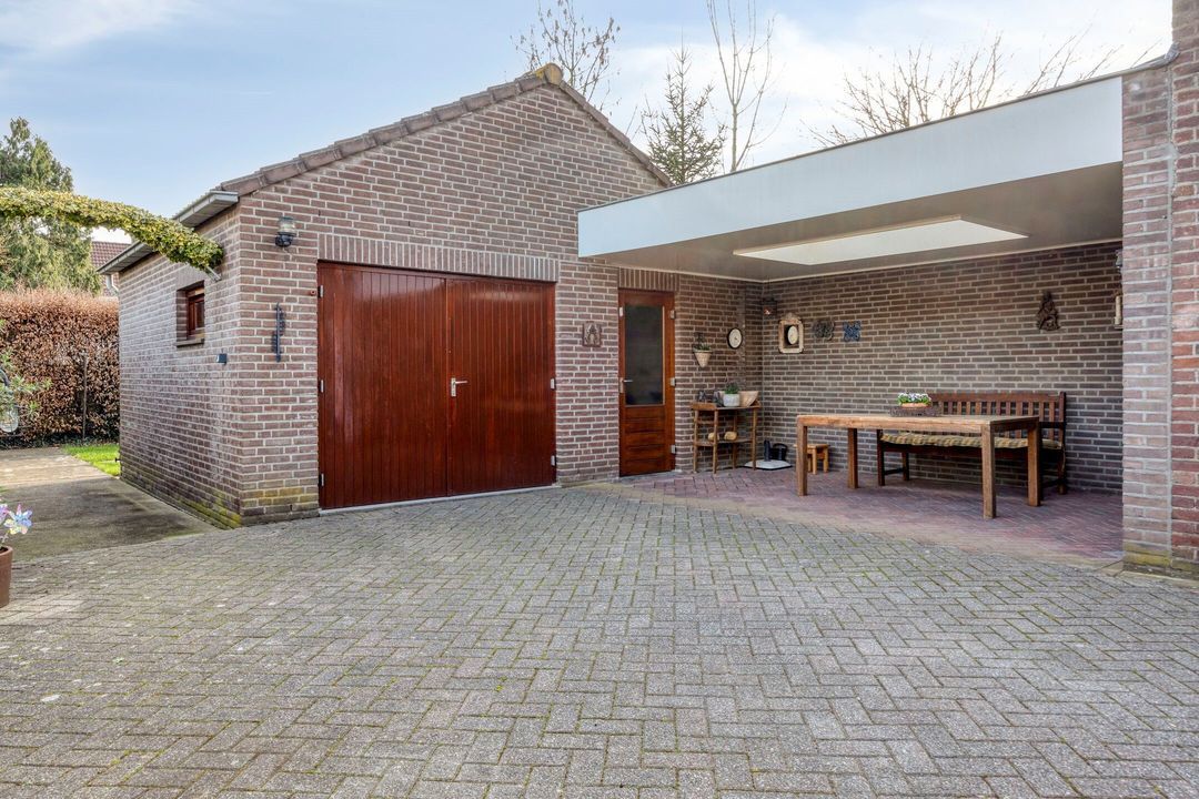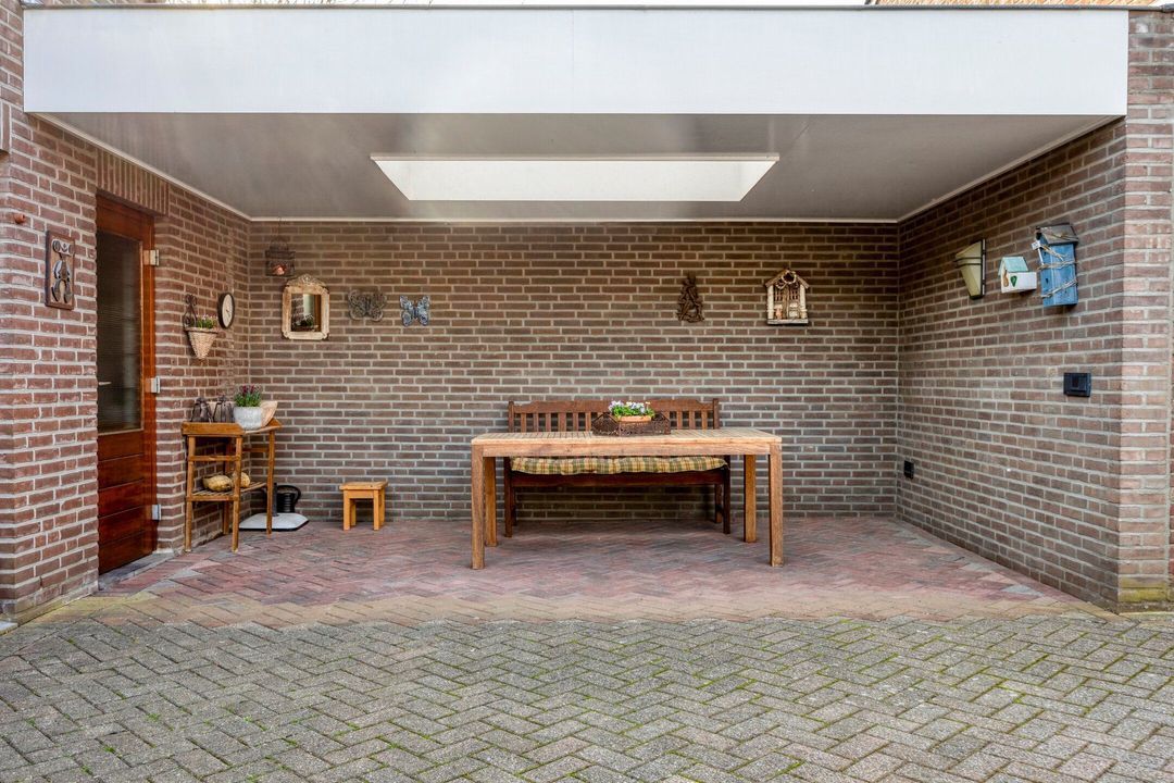 Daarnaast beschikt de tuin over een royale overkapping met lichtstraat van circa 15,5 m², waar u heerlijk beschut kunt zitten en optimaal kunt genieten van lange avonden buiten. Vanuit de tuin heeft u bovendien toegang tot de garage, een naastgelegen berging en een separate berging. Deze ruimtes zijn ideaal voor het stallen van fietsen, het opbergen van gereedschap of het creëren van extra opslagruimte.