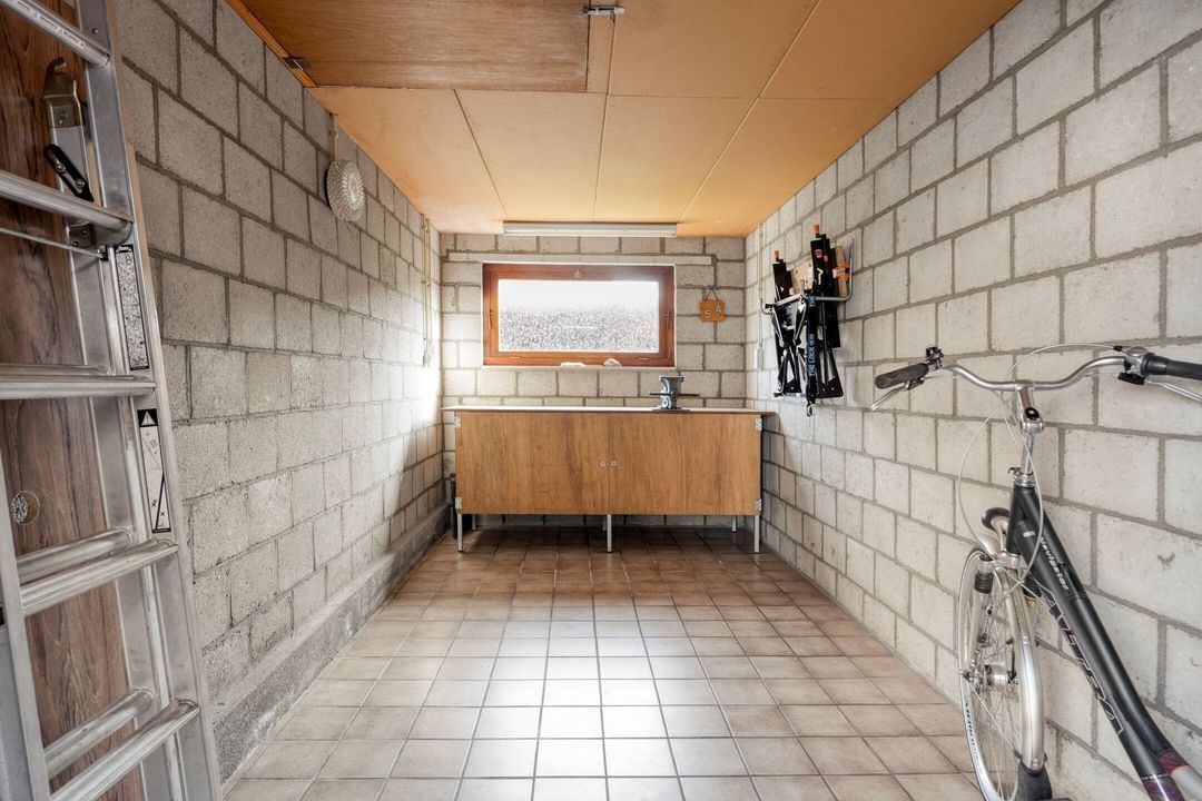 Via een deur in de entree is de kelder toegankelijk. Deze praktische kelderruimte van circa 24 m² biedt volop mogelijkheden voor het opslaan van provisie, voorraad en andere spullen. Daarnaast is de ruimte uitermate geschikt voor het plaatsen van een (extra) koelkast en/of vriezer.