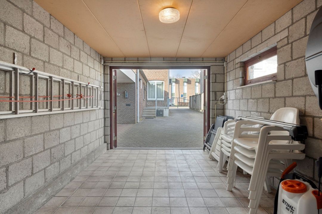 De ruime garage van circa 14 m² is voorzien van een tegelvloer en bereikbaar via de tuin. De garage biedt voldoende ruimte voor het parkeren van een auto of het opslaan van diverse spullen. Daarnaast beschikt de garage over een praktische bergzolder, die extra opbergruimte biedt en het geheel nog functioneler maakt.