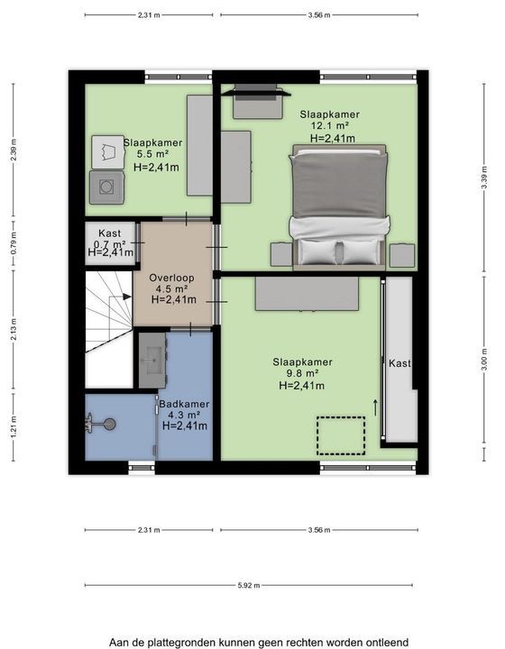 • Slaapkamer 2: deze kamer is ca. 10 m² groot.