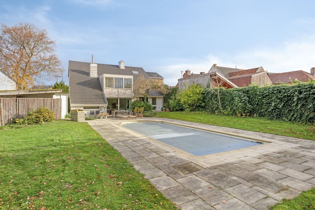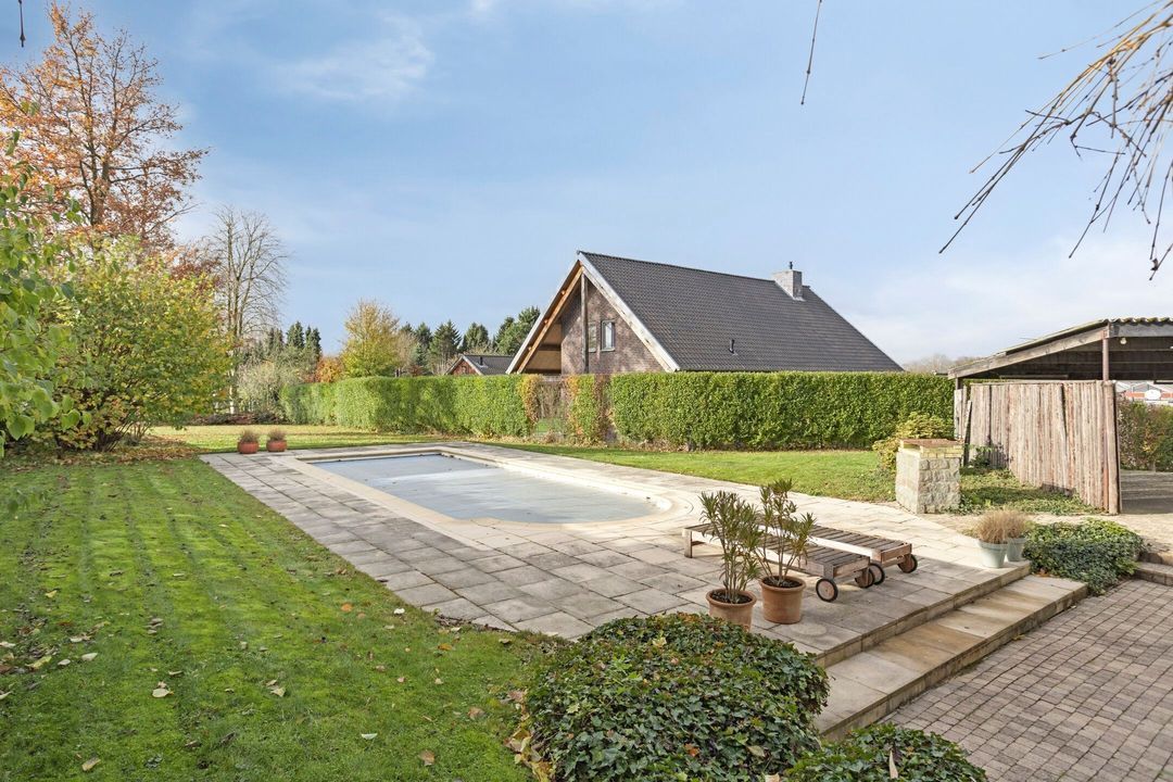 De tuin is bereikbaar via de schuifpui in de woonkamer en via de keukendeur. Deze weldadige, groene tuin is op het zuiden georiënteerd, waardoor u de hele dag van de zon kunt genieten. Het perceel is ingericht met een groot terras, een verzorgd gazon, volwassen beplanting en een prachtig ingebouwd zwembad met installatie. Hier geniet u van rust, privacy en een vakantiegevoel in eigen tuin. Op warme dagen biedt het uitschuifbare zonnescherm op het terras heerlijke schaduw.