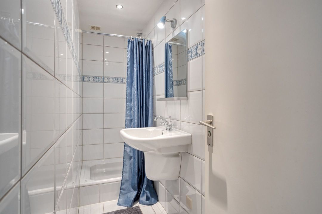 • Badkamer 1: De volledig betegelde badkamer is ca. 9 m² groot en is voorzien van een douchecabine en een wastafel.