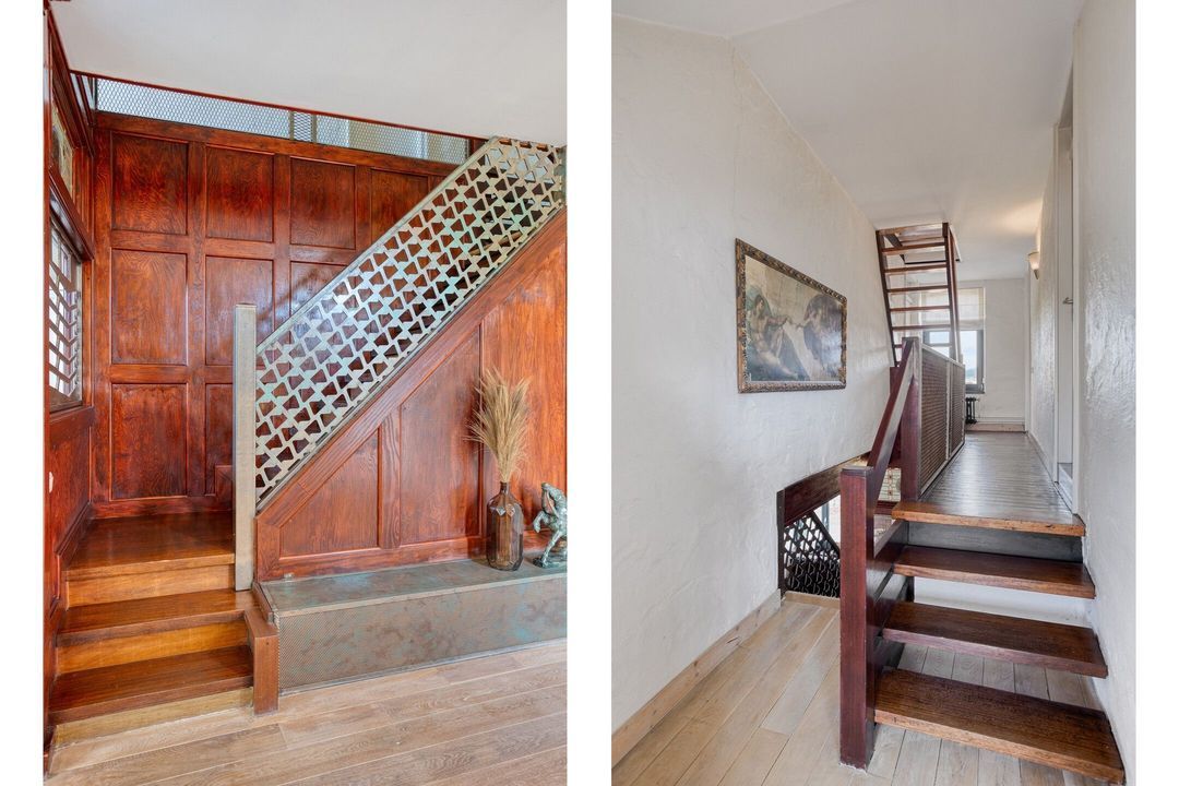 De prachtige houten trap in de entree leidt naar de overloop op de eerste verdieping. Vanaf hier zijn drie slaapkamers en een badkamer bereikbaar, evenals de vaste trap naar de zolder.