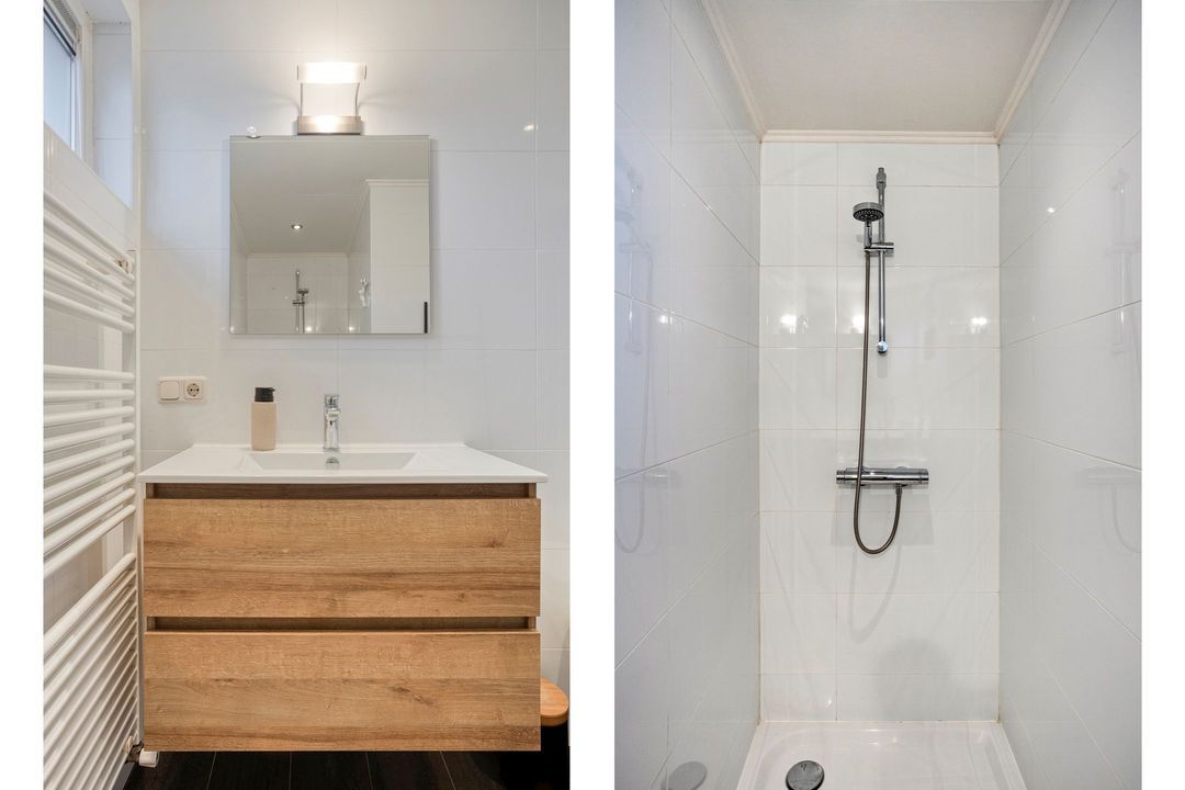 • Badkamer: De nette, betegelde badkamer van ca. 4 m² groot is voorzien van een inloopdouche, een wastafelmeubel, een closet en een handdoekradiator.