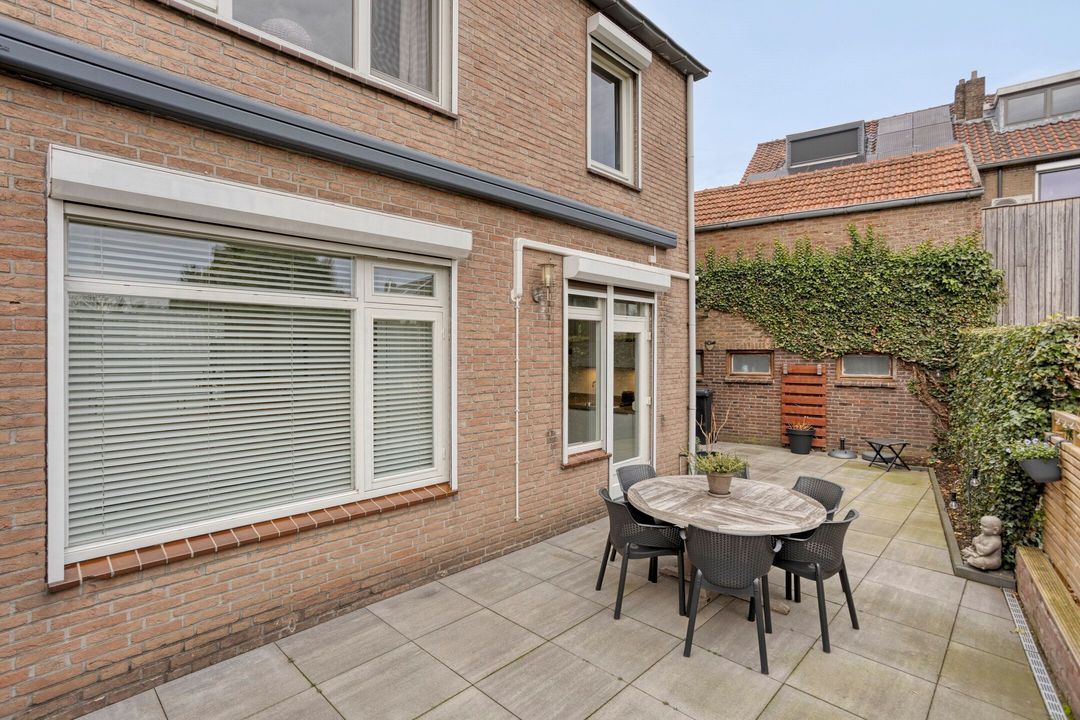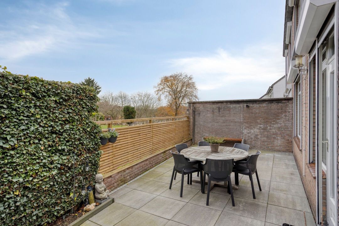 De onderhoudsvriendelijke, omsloten tuin biedt veel privacy en is bereikbaar via de keuken en de zijingang. De tuin beschikt over een ruim terras, plantborders en een uitschuifbaar zonnescherm, waardoor het heerlijk vertoeven is, zowel voor ontspannen momenten als voor gezellige diners buiten. De tuin kan volledig naar eigen wens worden ingericht, waardoor u hier uw eigen persoonlijke oase kunt creëren.