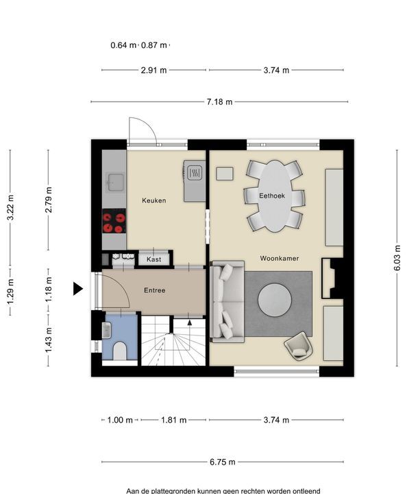 Via de nette entree (ca. 6 m²) betreedt u de woning. De fraaie laminaatvloer loopt door in de keuken en woonkamer en zorgt voor een ruimtelijk geheel. Vanuit de hal heeft u toegang tot de meterkast, de volledig betegelde toiletruimte met hangcloset en fonteintje, de keuken en de trapopgang naar de eerste verdieping en het souterrain.