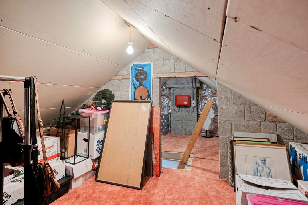 Via de vlizotrap bereikt u de zolderverdieping, met een vloeroppervlak van ca. 27 m², momenteel in gebruik als bergruimte. Door het plaatsen van een vaste trap en een dakkapel kan hier eenvoudig een vierde slaapkamer gecreëerd worden, waardoor de woning nog meer mogelijkheden biedt voor een groeiend gezin of extra werk- of hobbyruimte.