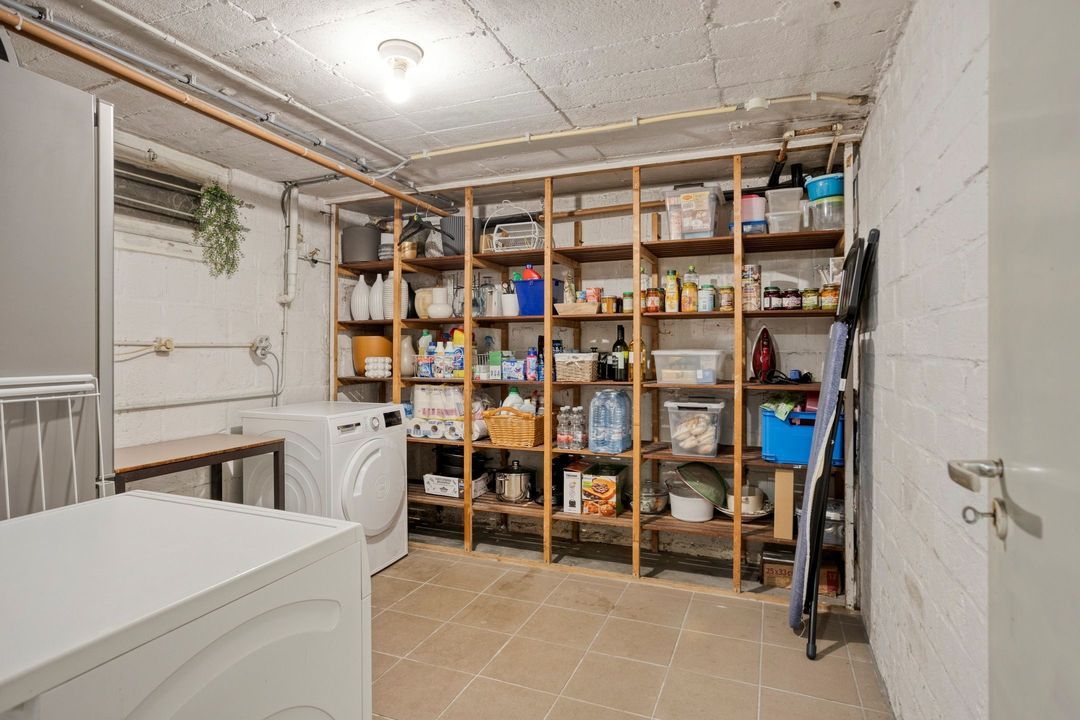 • Berging 1: Deze berging is ca. 9,5 m² groot. Tevens bevindt zich hier de witgoedaansluiting en is veel bergruimte aanwezig.