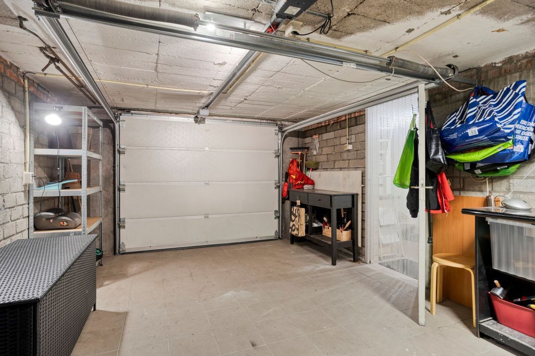 • Garage: De garage is ca. 21,5 m² groot en eveneens bereikbaar via de elektrisch bedienbare kantelpoort. De garage is voorzien van elektra en biedt plek voor het parkeren van een voertuig of het stallen van fietsen.