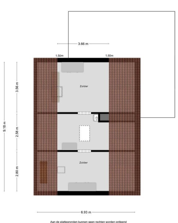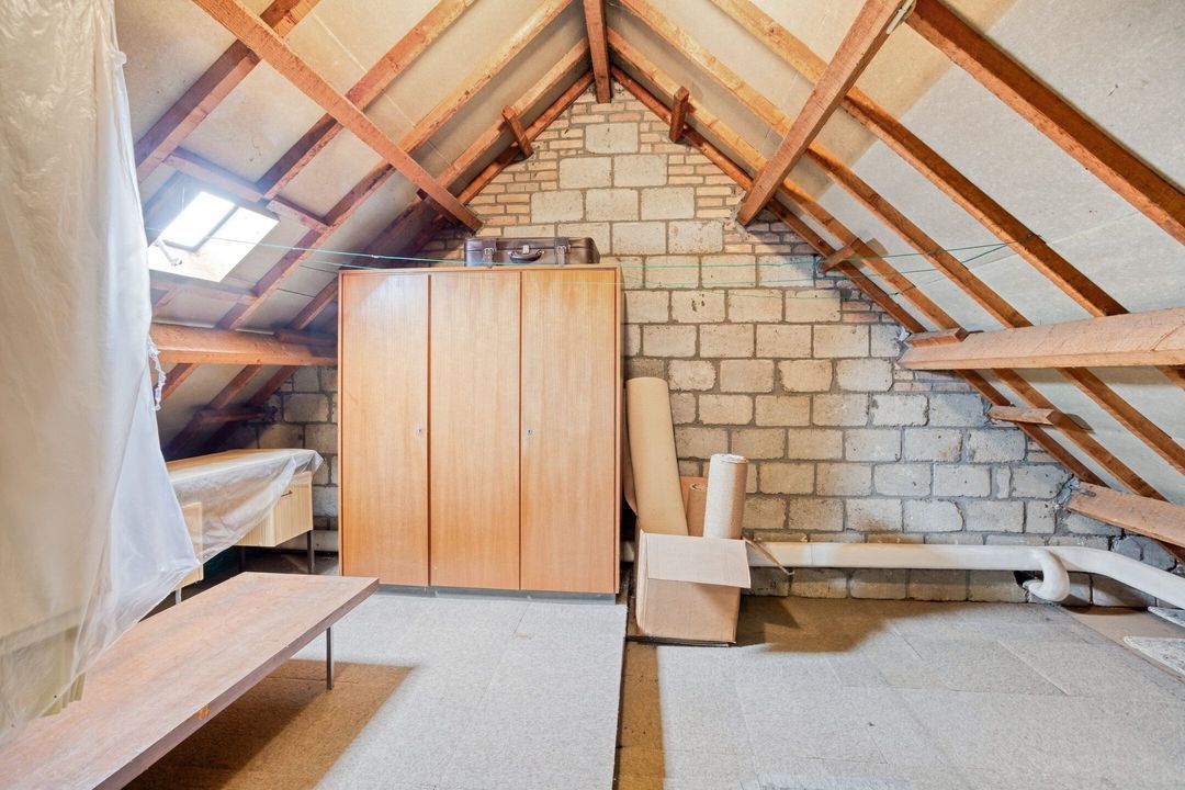Via een vlizotrap bereikt u de zolderverdieping, bestaande uit drie royale ruimtes. Hier bevindt zich de cv-installatie (Nefit, Eigendom, bouwjaar onbekend). Momenteel wordt deze verdieping gebruikt als bergruimte, maar met enige aanpassingen kunnen hier een of twee extra slaapkamers worden gecreëerd, waardoor de woning nog veelzijdiger wordt.