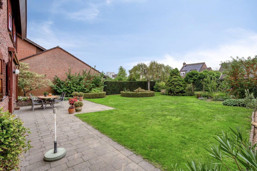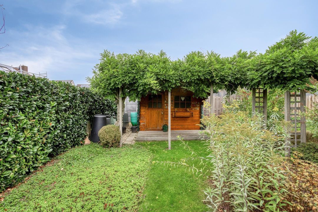 De schitterende tuin rondom de woning is een echte blikvanger. Toegang is mogelijk vanuit de woon-/eetkamer, de garage en de zijingang. De combinatie van weelderige plantenborders, een groot gazon en een ruim terras direct grenzend aan de woonkamer maakt dit een veelzijdige en groene buitenruimte. Achter in de tuin bevindt zich een praktische berging voor tuingereedschap of materialen. Het ruime perceel van circa 545 m² biedt volop mogelijkheden om extra terrassen aan te leggen, een moestuin te starten of gewoon te genieten van het buitenleven in alle rust.