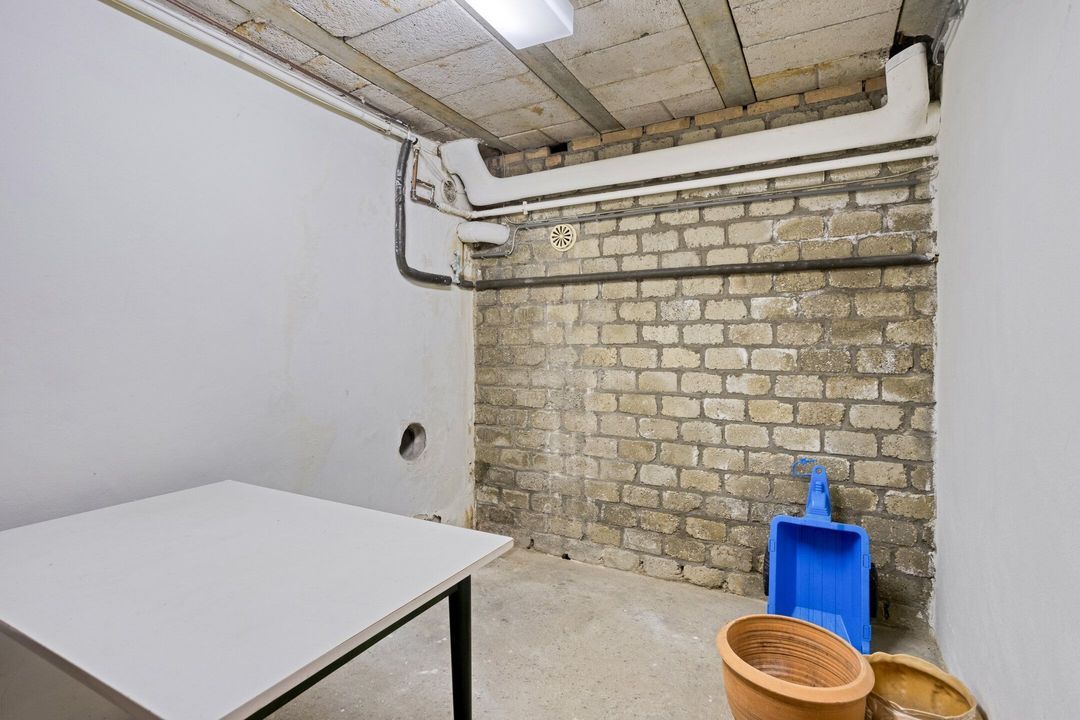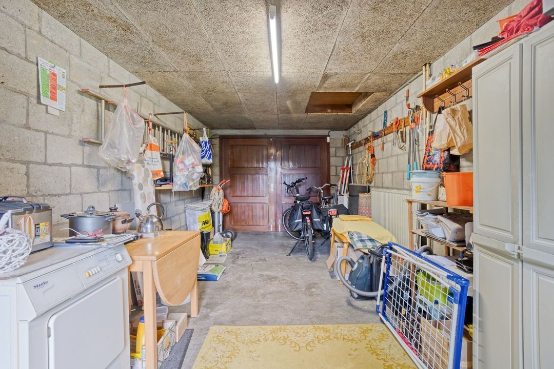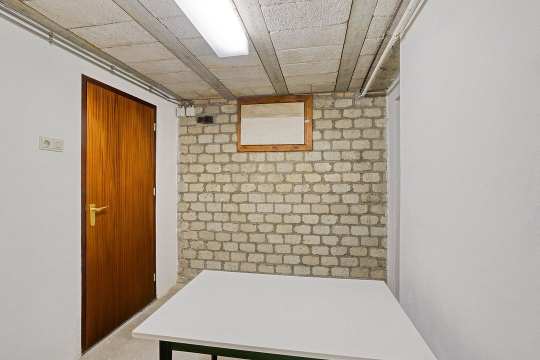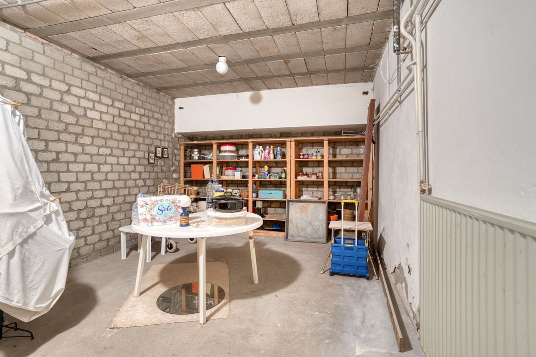Via de trap in de entree bereikt u de kelder, bestaande uit drie praktische bergruimtes. Deze ruimtes zijn uitermate geschikt voor opslag van voorraden, seizoensgebonden materialen of hobbybenodigdheden, waardoor u in de rest van de woning volop leefruimte overhoudt.