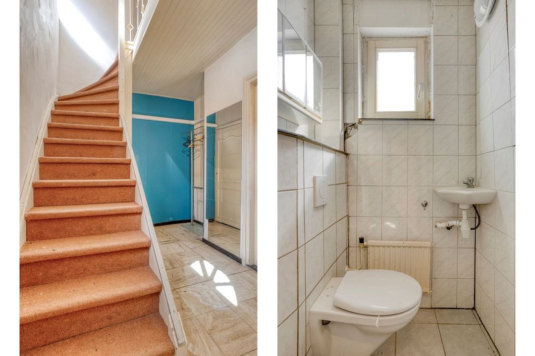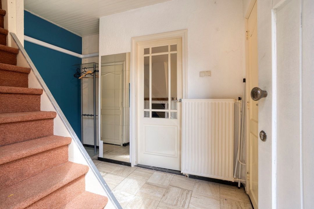 Bij binnenkomst is er een royale entree van ca. 8 m², voorzien van een lichte tegelvloer. Vanuit de hal heeft u toegang tot de meterkast, de toiletruimte en de woonkamer. Ook de trap naar de eerste verdieping bevindt zich hier, met eronder een praktische trappenkast voor extra bergruimte. De betegelde toiletruimte is uitgerust met een modern hangcloset en fonteintje.