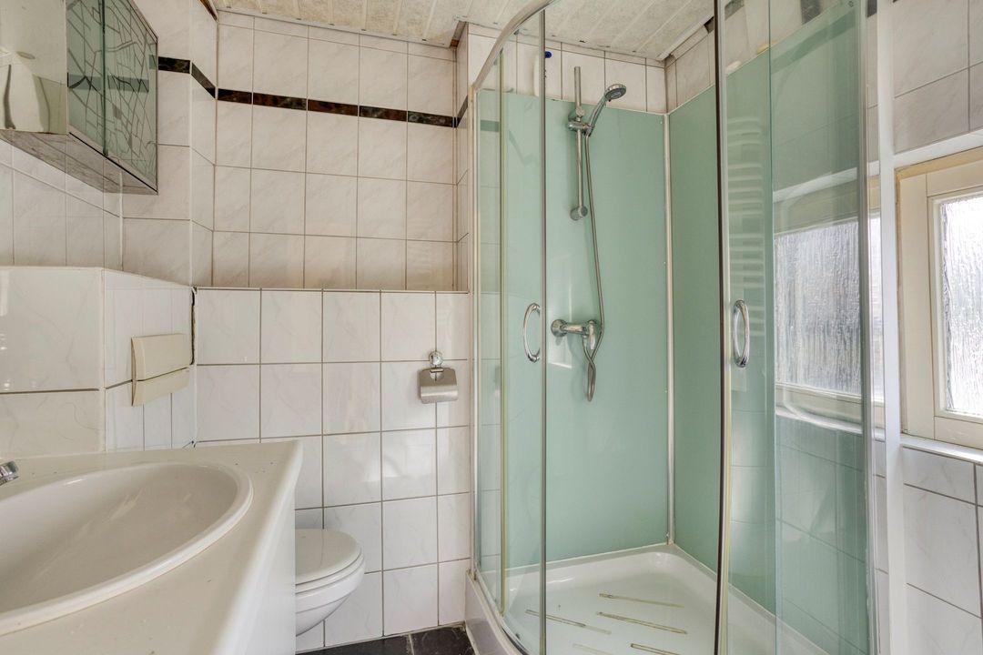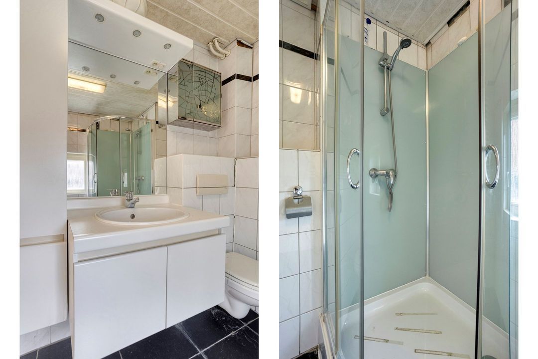 • Badkamer: De betegelde badkamer is ca. 5 m² groot en voorzien van een douchecabine, een wastafelmeubel en een hangcloset.