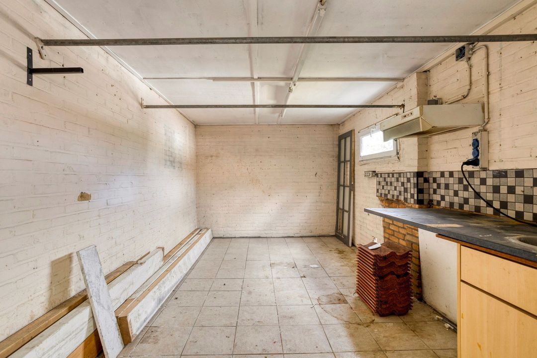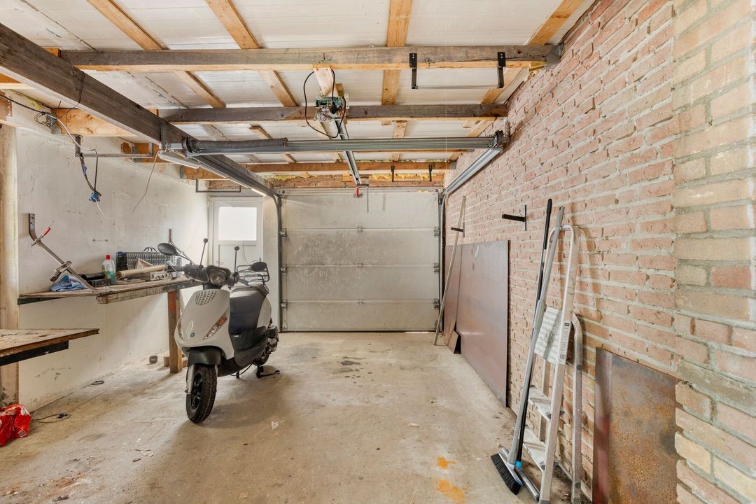 De woning beschikt over een ruime garage met aangrenzende bijkeuken/berging van in totaal ca. 37 m² groot. De garage is toegankelijk via een elektrisch bedienbare kantelpoort, een deur vanaf de oprit én een deur vanuit de achtertuin. De aanwezigheid van elektra en water maakt deze ruimte ideaal voor het parkeren van een auto, het stallen van fietsen of als praktische klus- of hobbyruimte.