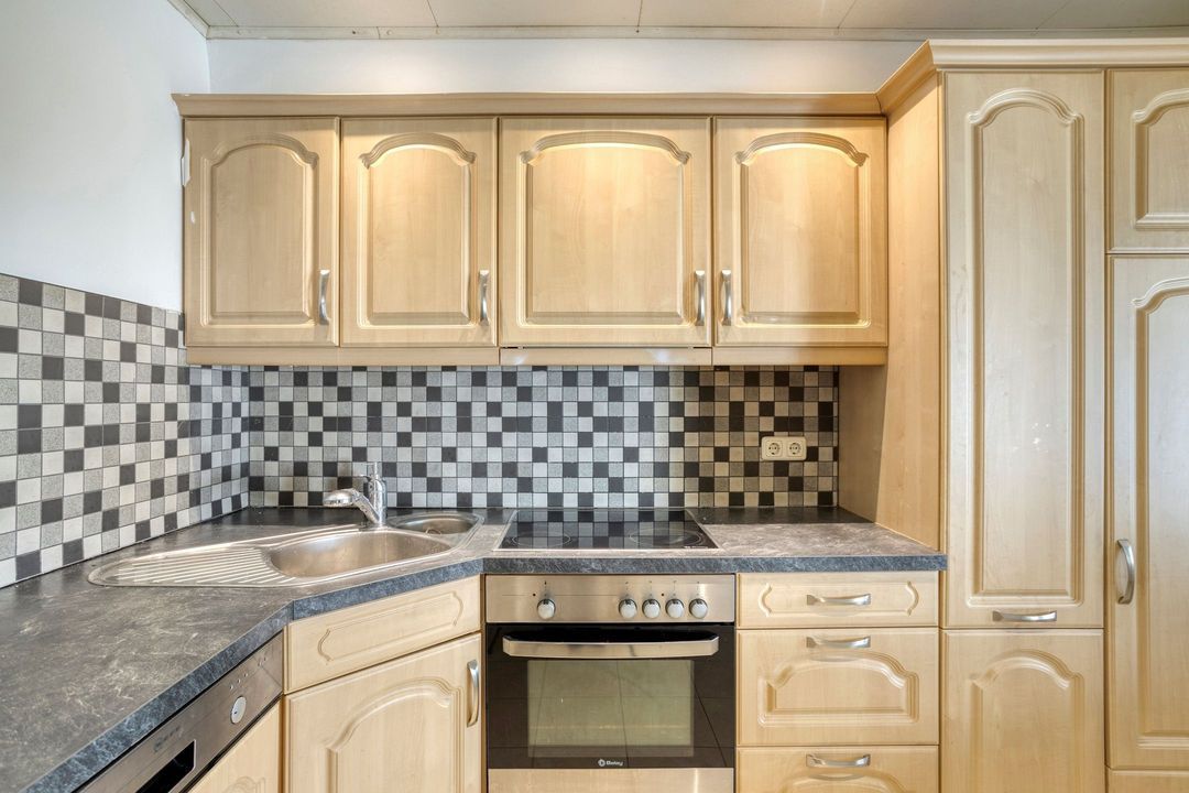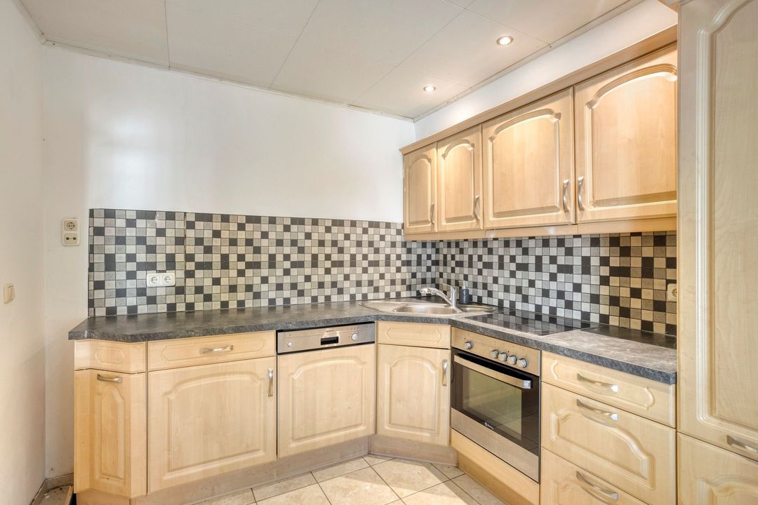 De keuken (ca. 8 m²) is praktisch ingericht met diverse inbouwapparatuur: een oven, keramische kookplaat, afzuigkap en vaatwasser. Ook vanuit de keuken is er een deur naar de achtertuin, waardoor binnen en buiten naadloos met elkaar verbonden zijn.