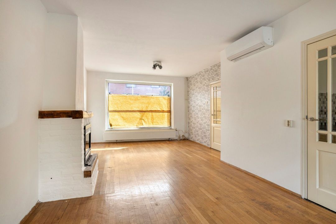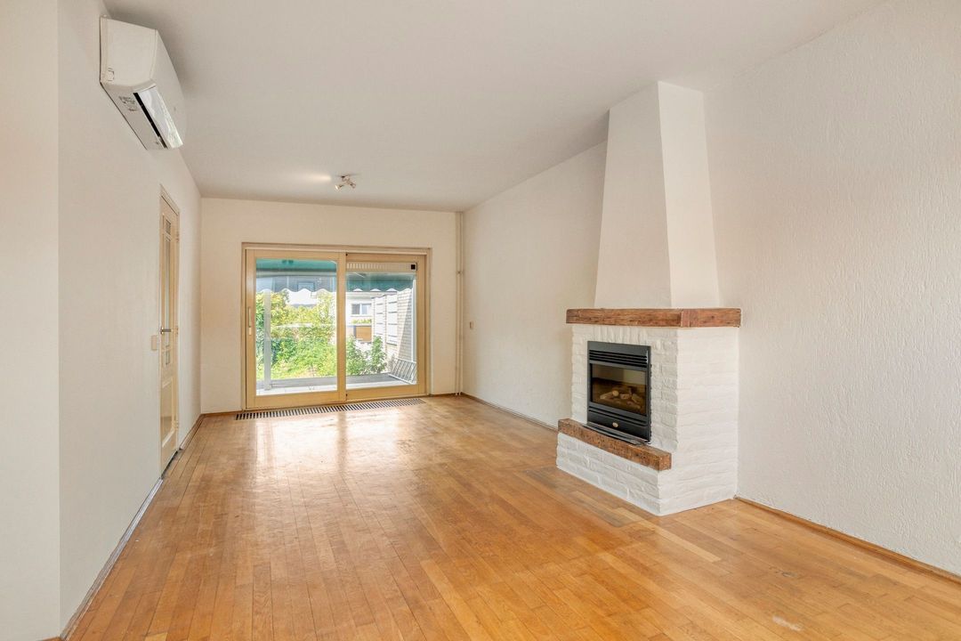 De woonkamer (ca. 27 m²) valt op door de grote raampartijen en de schuifpui, die zorgen voor een prettige lichtinval en een directe verbinding met de achtertuin. Centraal in de ruimte bevindt zich een sfeervolle schouw, en ook hier is een airconditioning aanwezig voor extra wooncomfort. Vanuit de woonkamer is de keuken bereikbaar.
