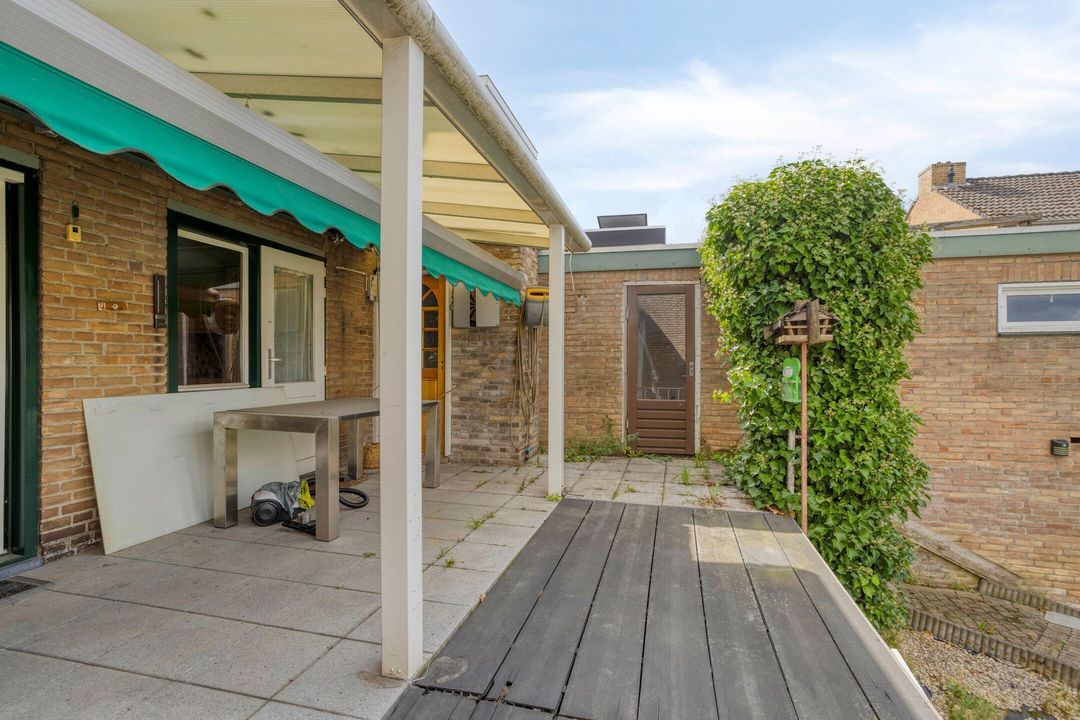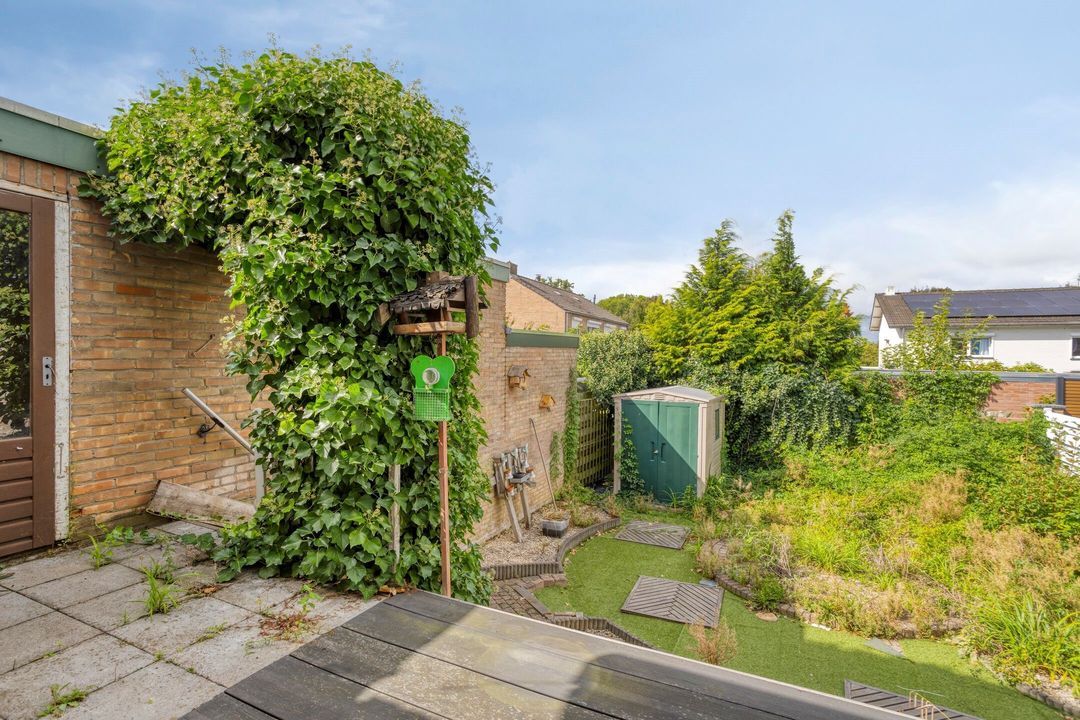 De royale en groene achtertuin is bereikbaar via de garage, de keuken of de woonkamer. De tuin is splitlevel en is voorzien van veel privacy. Grenzend aan de woonkamer en keuken bevindt zich een ruime overkapping. Hoewel de tuin enige verzorging vraagt, biedt deze juist ook de kans om volledig naar eigen wens en smaak in te richten en er een persoonlijke groene oase van te maken.