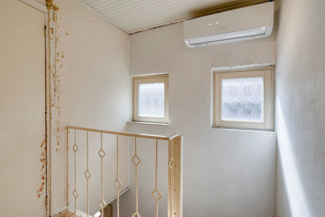 De trap in de entree leidt naar de overloop op de eerste verdieping, van waaruit drie slaapkamers en de badkamer bereikbaar zijn. Op de overloop bevindt zich eveneens een airconditioning.