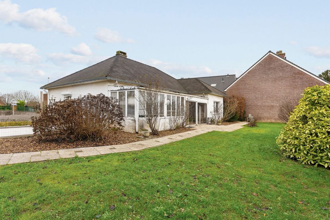 In de landelijke dorpskern van Kesselt ligt deze verrassend ruime bungalow op een royaal, zuidgericht perceel van 892 m².
