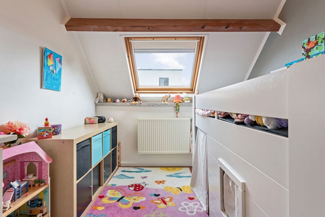 De overloop op de eerste verdieping leidt naar de master bedroom (16,25 m²) met toegang tot een aangenaam terras van ca. 13 m² groot waar je in alle rust van de ochtendzon kunt genieten. Daarnaast zijn er nog drie bijkomende slaapkamers (ca. 11,81 m² – 10,91 m² – 9,20 m²), ideaal voor een gezin of logees. De hedendaagse badkamer is ca. 7,36 m² groot en stijlvol afgewerkt en voorzien van een ligbad, douche, dubbele wastafel en toilet.