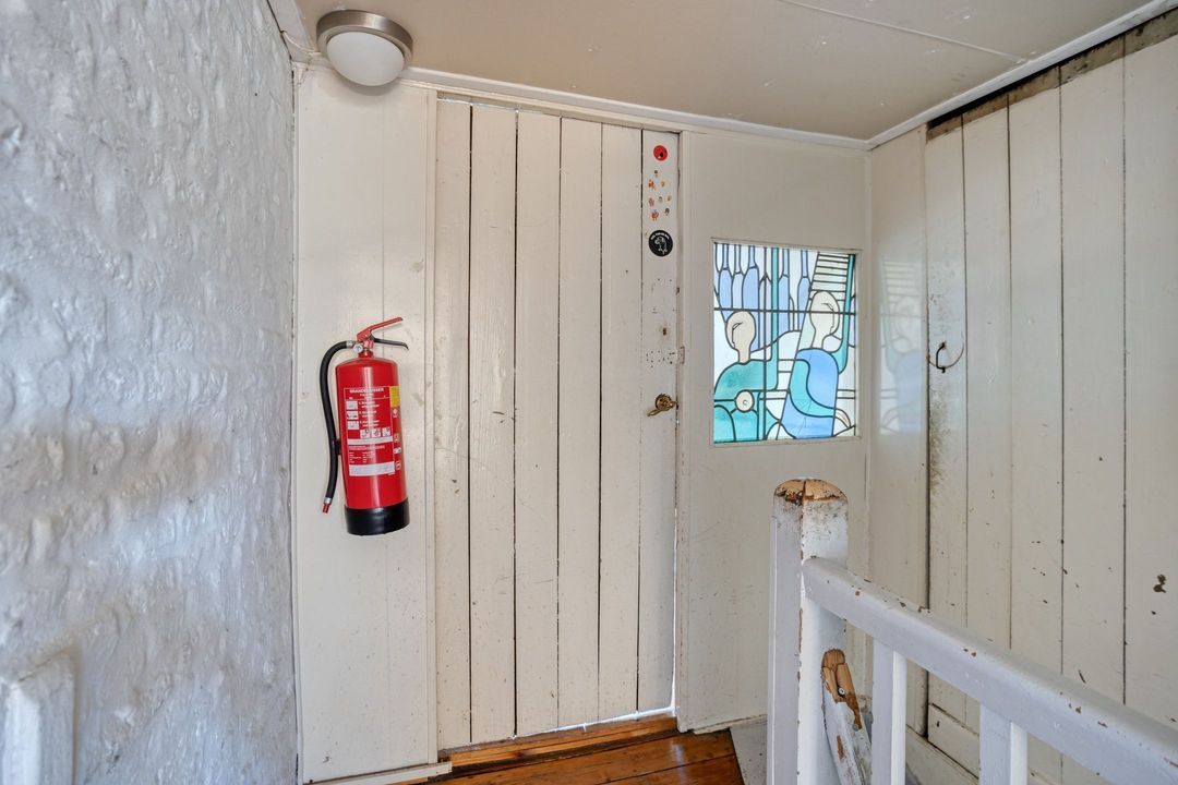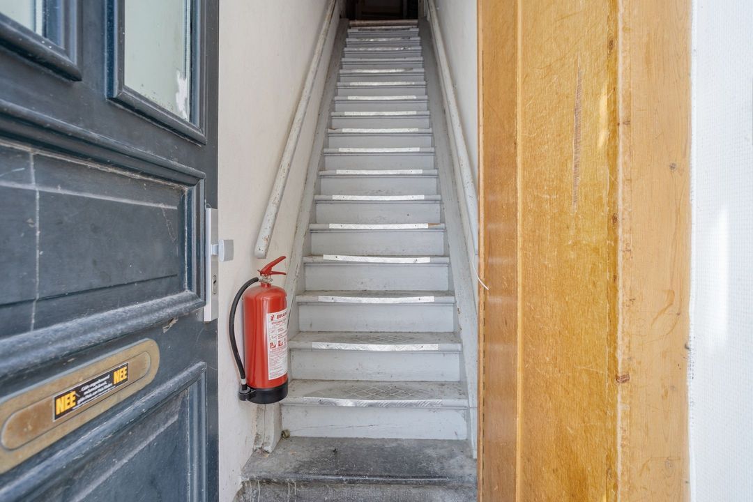 Via de trap in de entree bereikt u een overloop van ca. 8 m² groot. Hier bevindt zich een deur naar appartement Boschstraat 77-B, een deur naar de slaapkamer en een trap naar het tweede appartement.